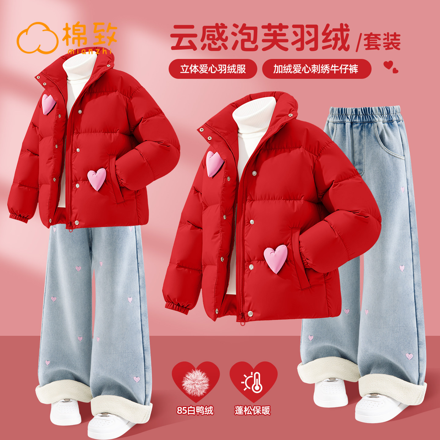 棉致女童冬装套装2026新款冬季加绒加厚女大童外套厚款儿童羽绒服