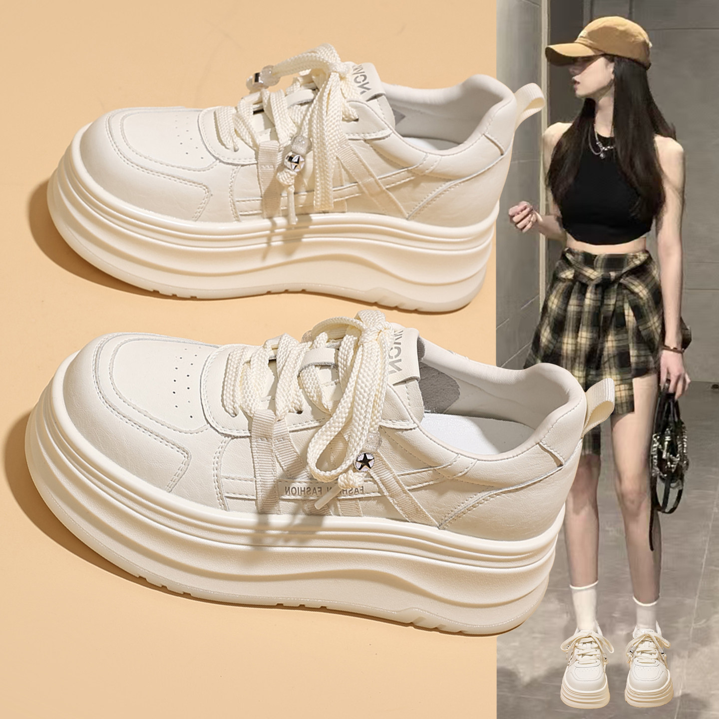 超火显脚小厚底小白鞋女款2026春季新款爆款内增高轻便运动休闲鞋