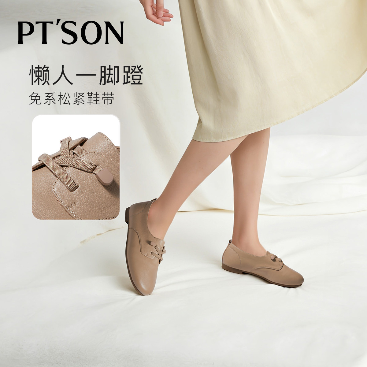 百田森真皮乐福鞋女2026春季新款免系带皮鞋女款法式英伦风小皮鞋