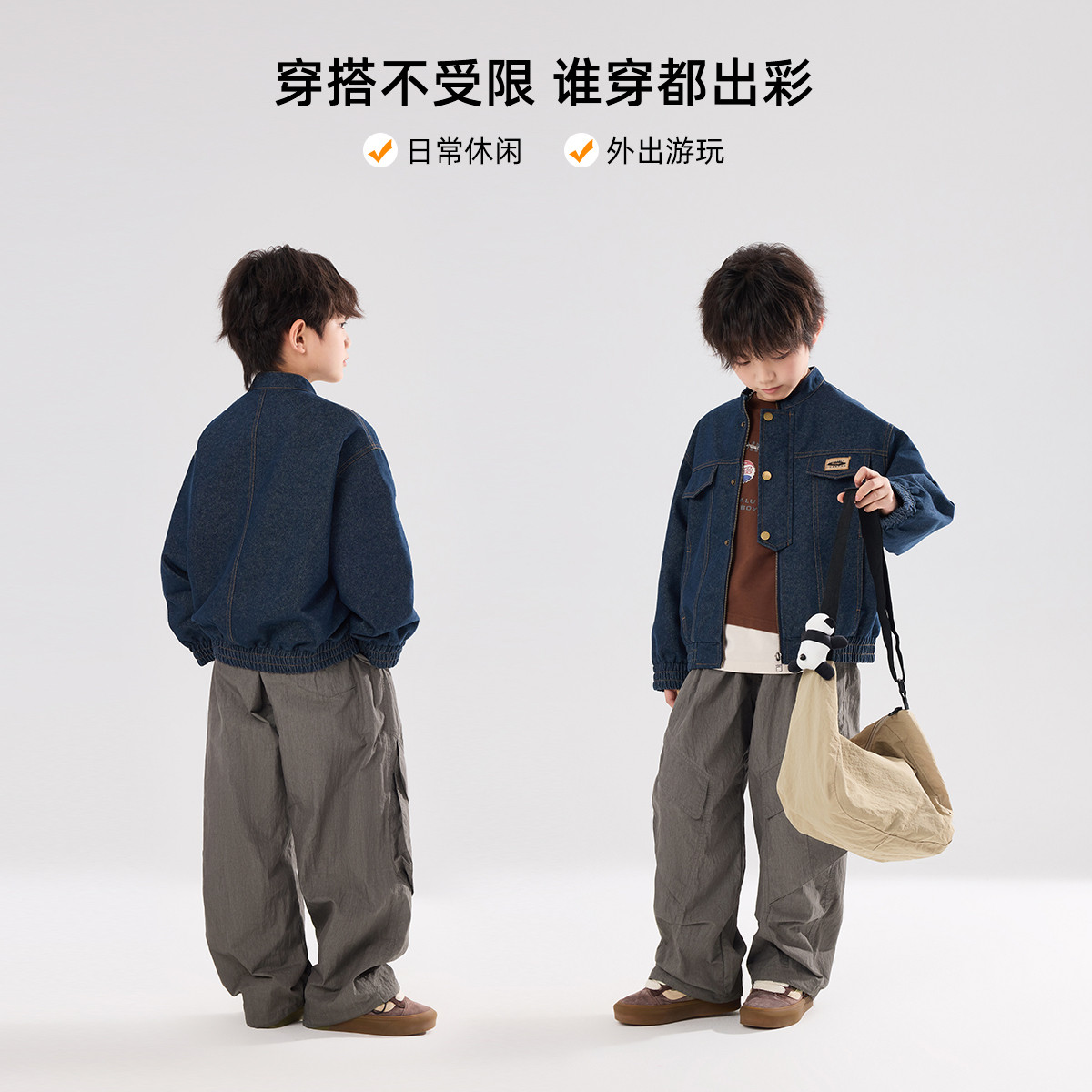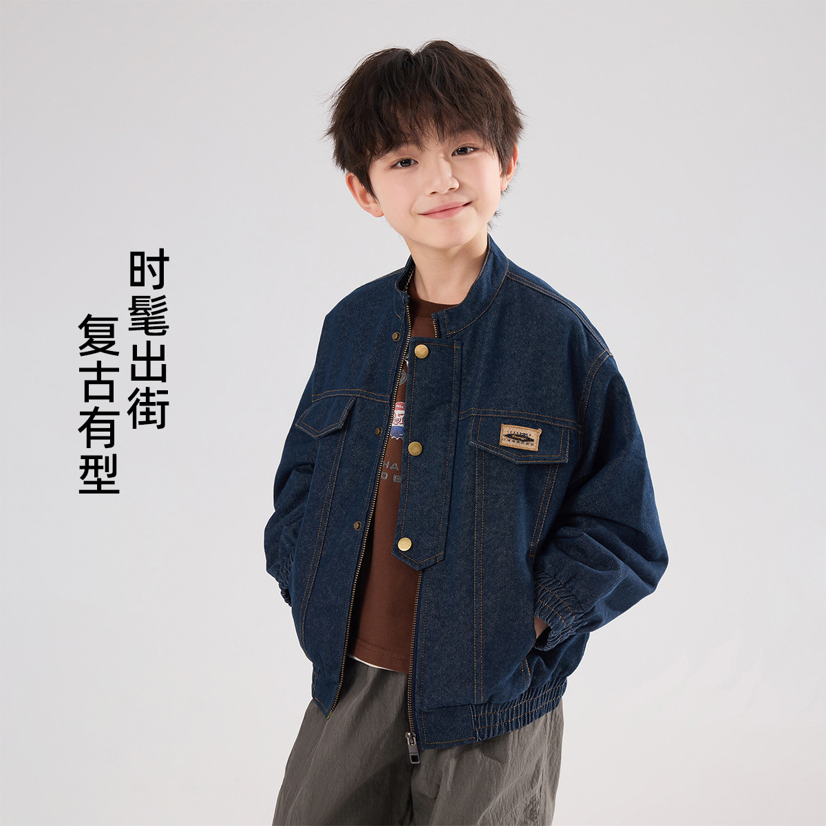 布丁哈鲁春装男童童装复古上衣2026春季新款儿童百搭夹克牛仔外套