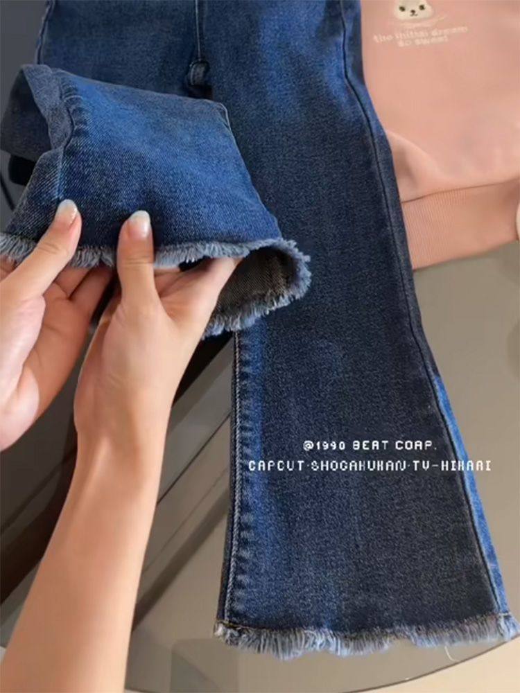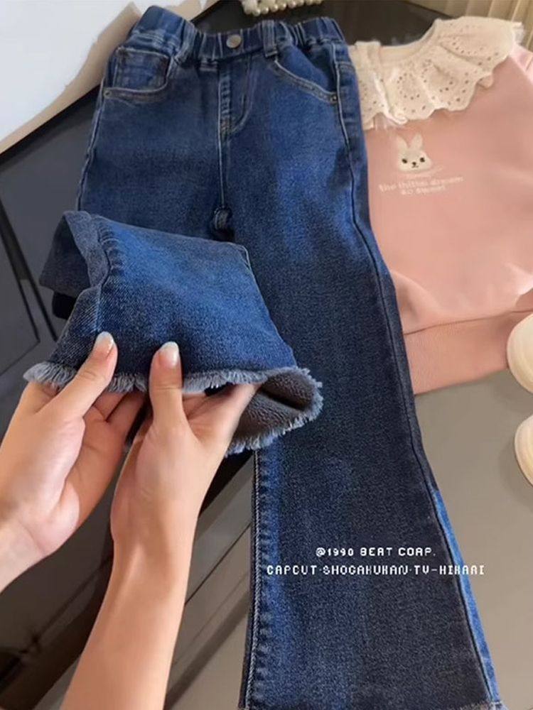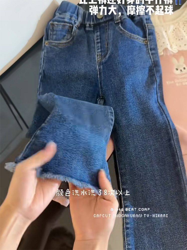 女童裤子牛仔裤2025春秋新款小女孩弹力喇叭裤洋气女宝休闲裤长裤
