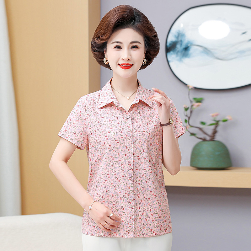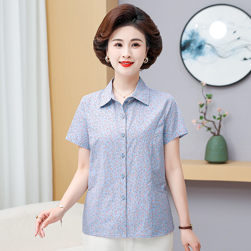 上衣碎花全棉短袖开衫夏装新款婆婆妈妈女款纯棉衬衫今年中老年人