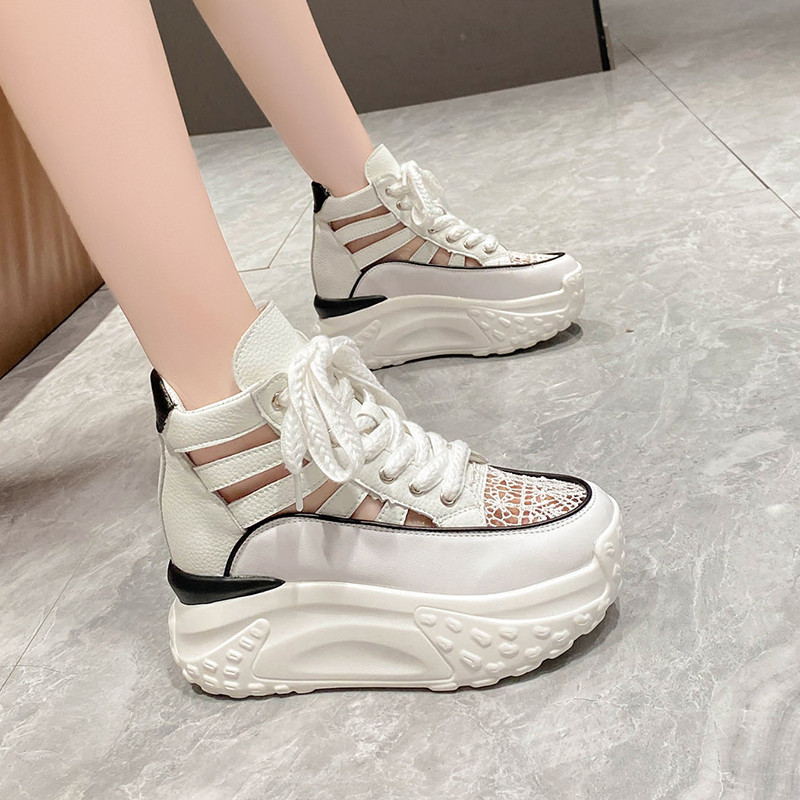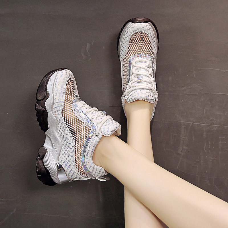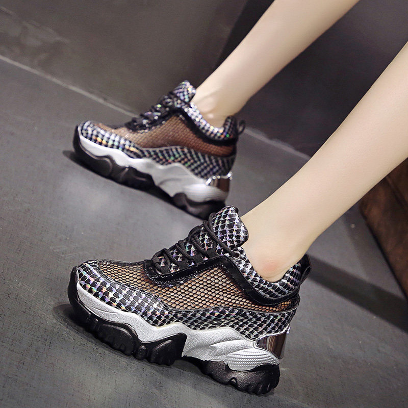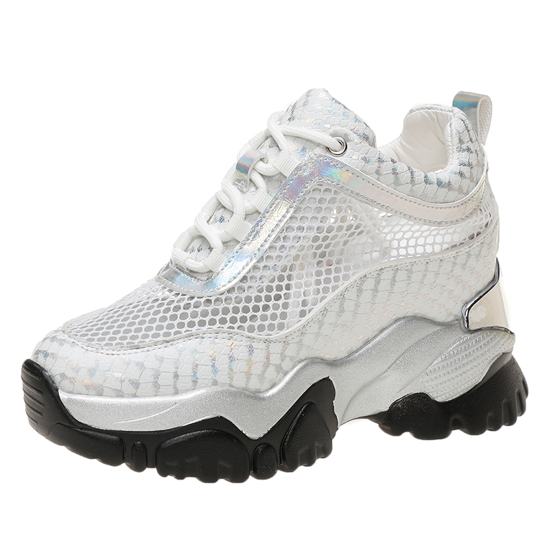 内增高老爹鞋女夏2026新款网鞋镂空透气网面8cm厚底运动休闲女鞋