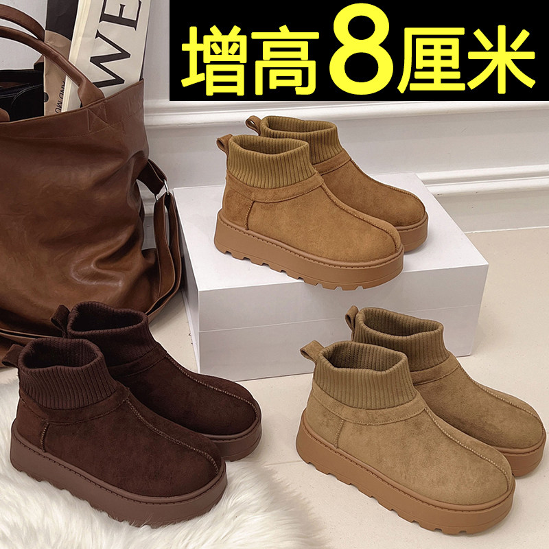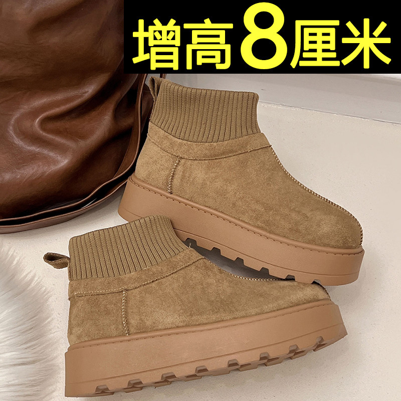 厚底保暖雪地靴女款2026新款冬季加绒加厚内增高东北棉鞋毛毛短靴