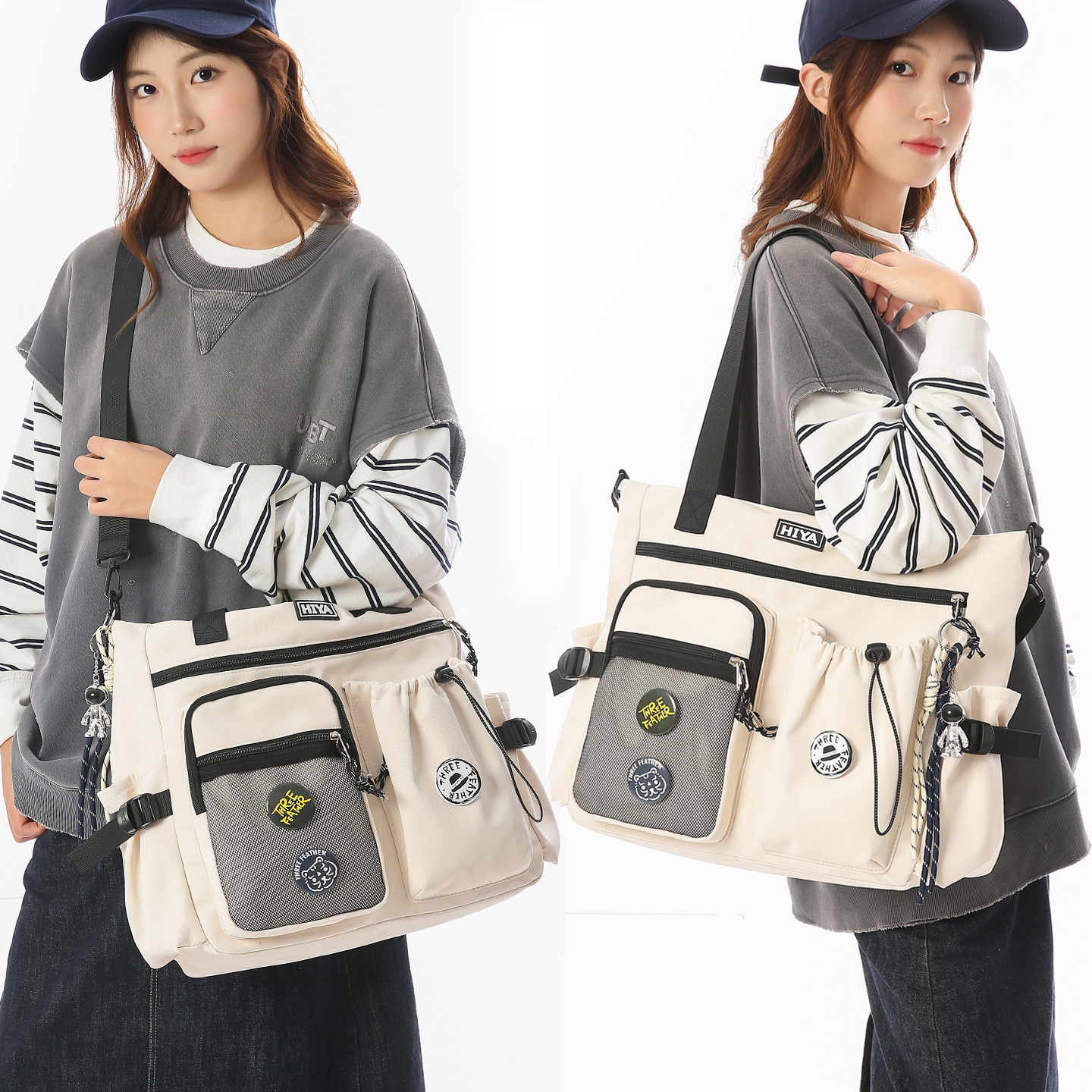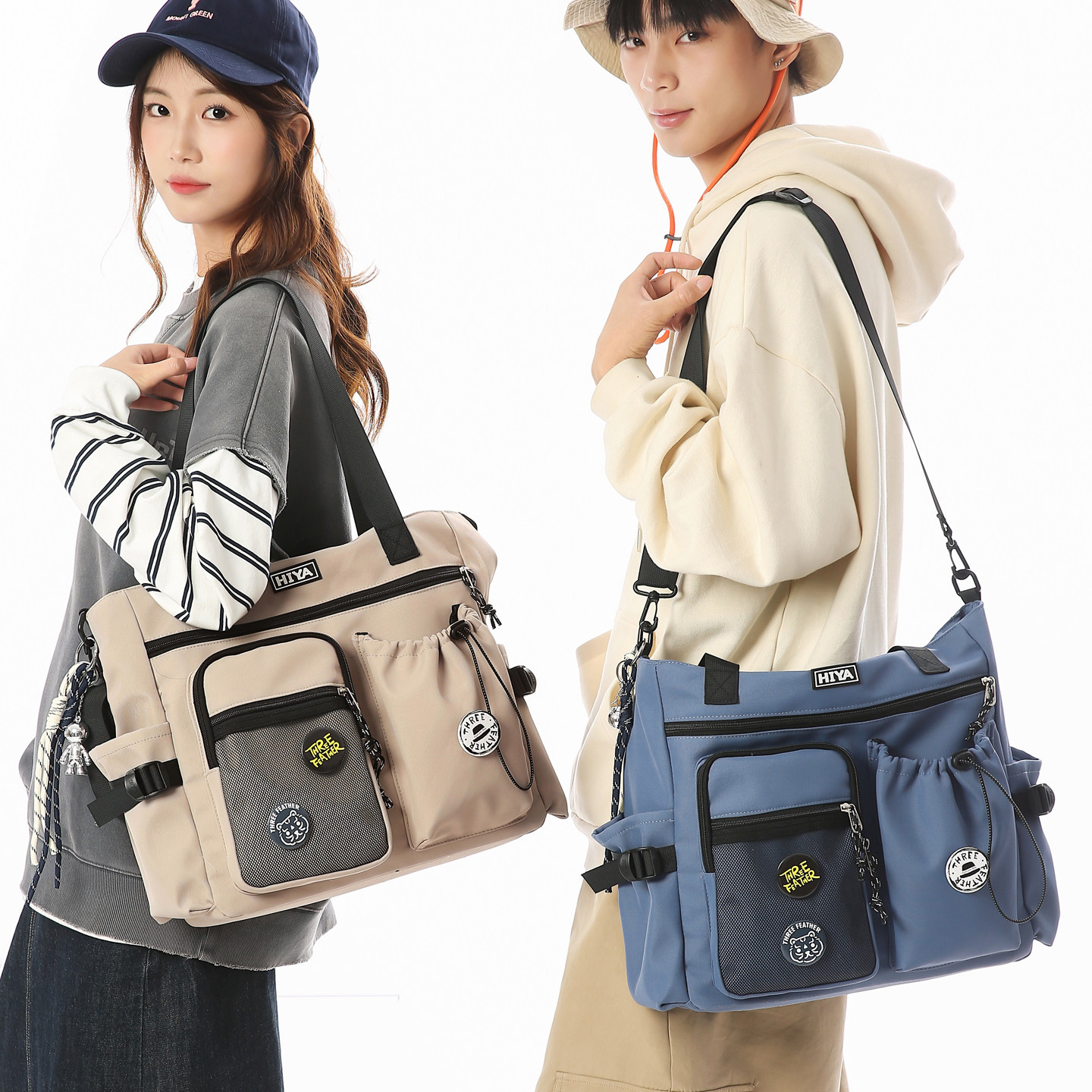 工装风大容量托特包男初中大学生上课手提单肩包女干湿分离斜挎包