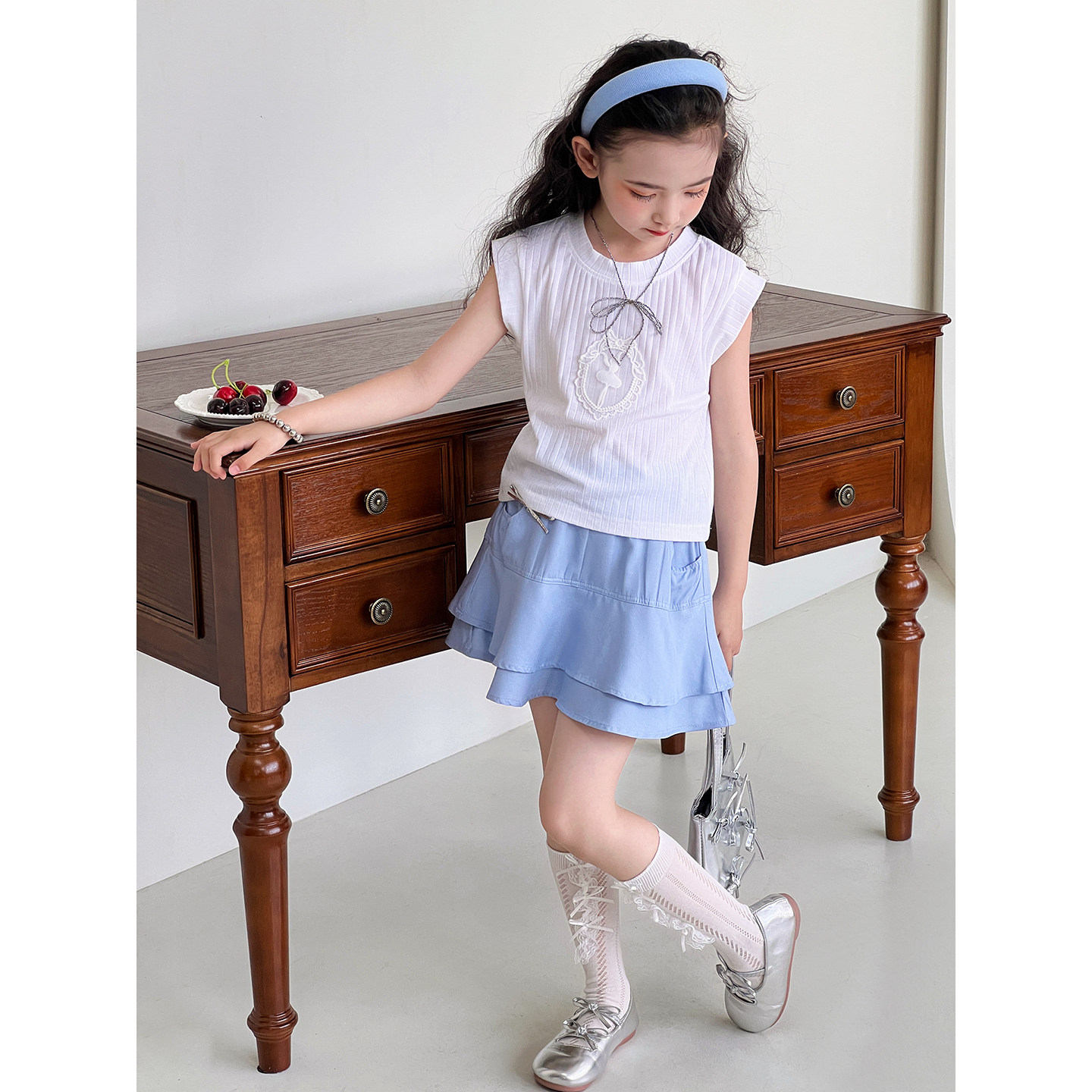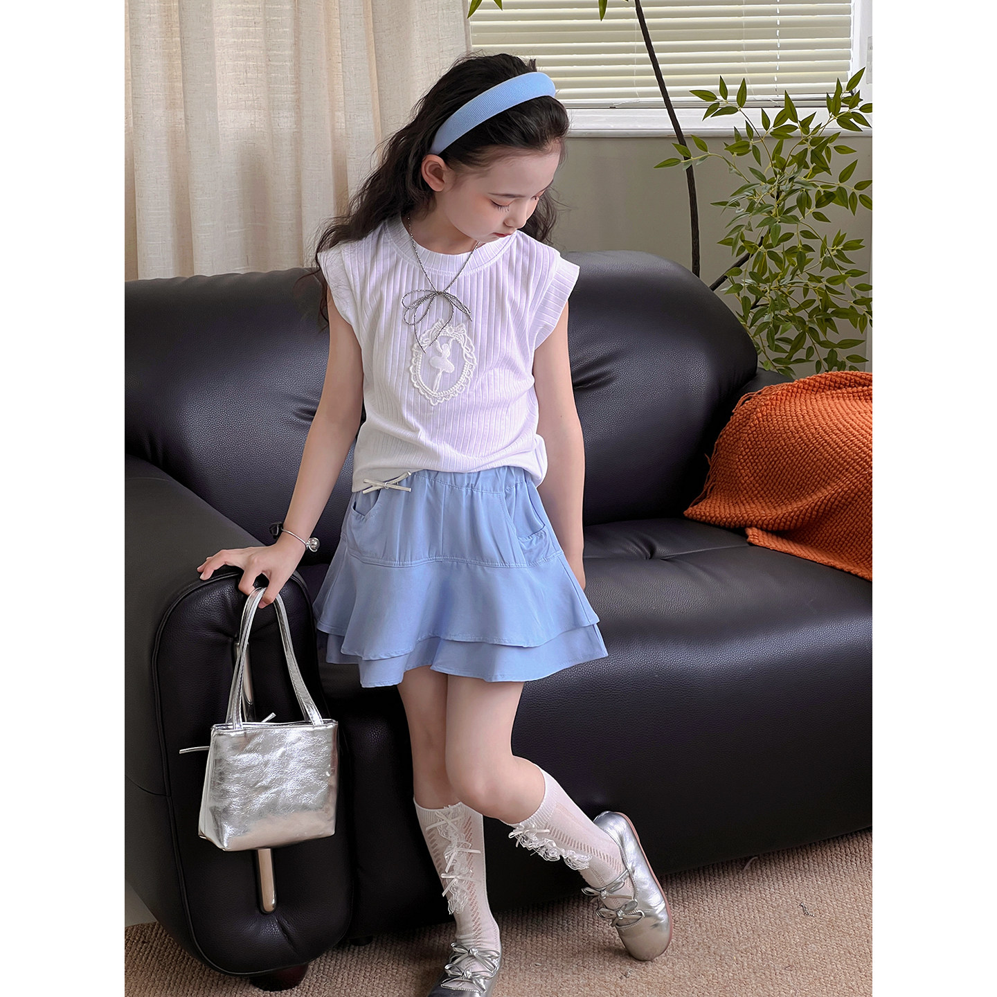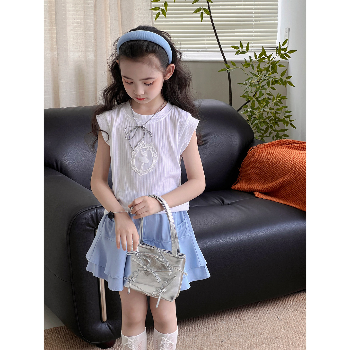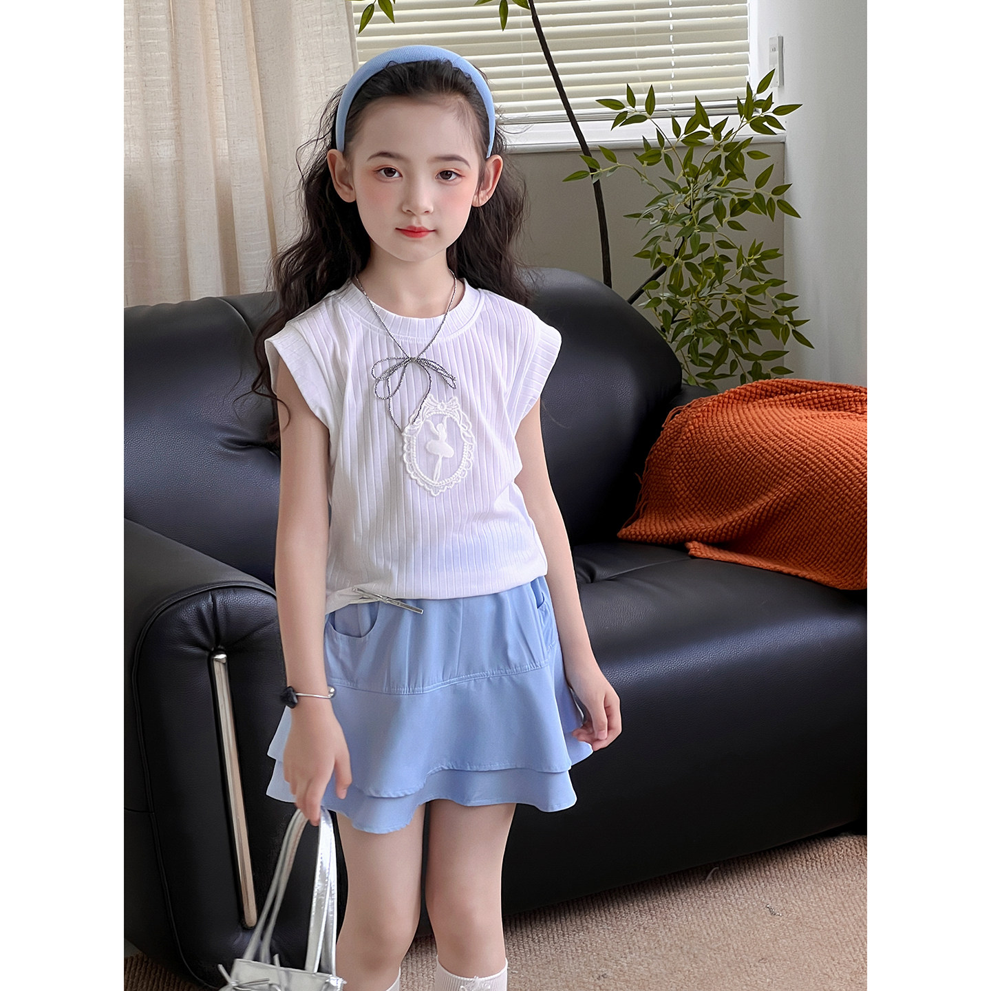 女童套装夏季2026新款儿童无袖T恤半身裙上衣裙子两件套洋气韩版