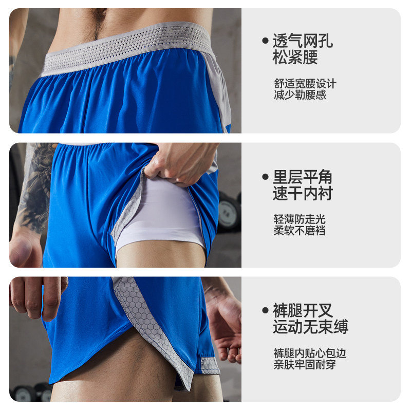 橙义家跑步短裤男女专业马拉松运动速干三分裤二合一健身裤训练裤