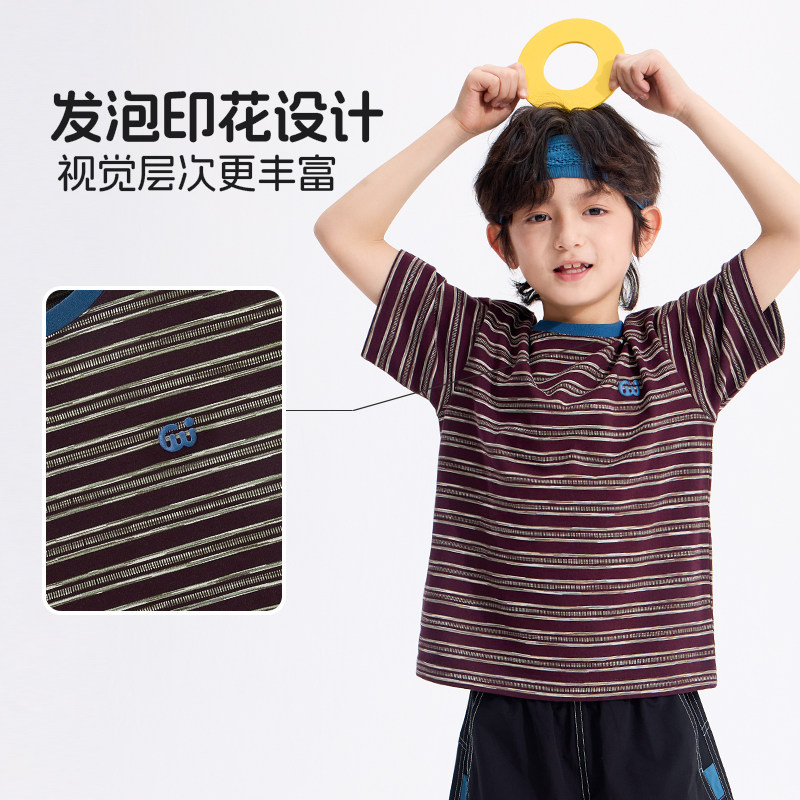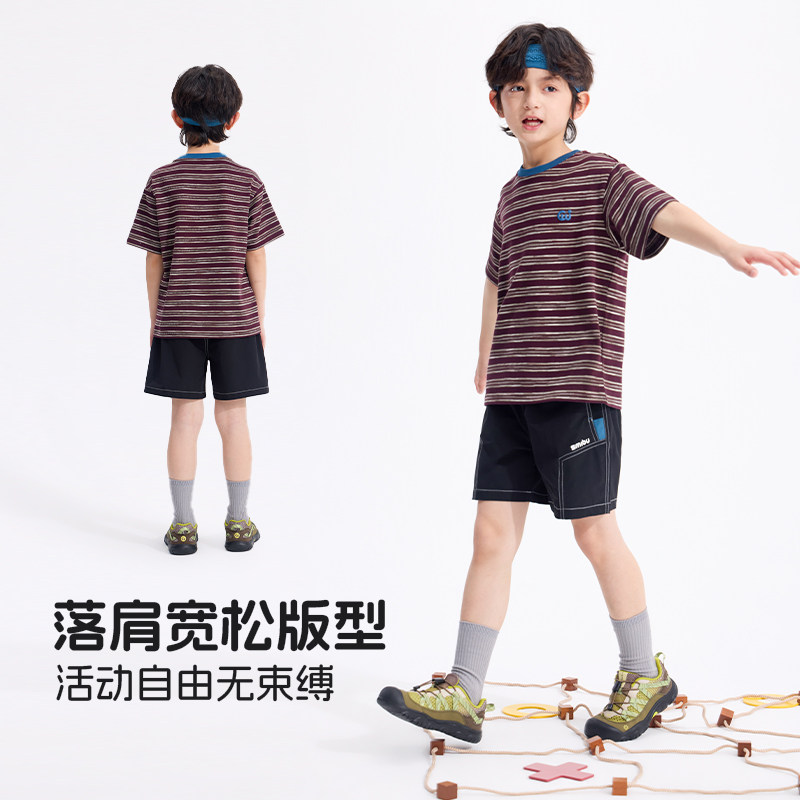 SMIBU斯密朴儿童T恤2026夏季新款男女童短袖t恤A类中大童条纹上衣