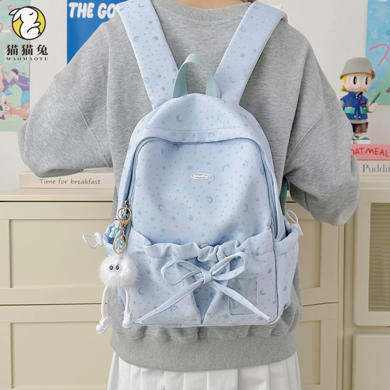 311线报网描述:猫猫兔少女绿色大容量春游双肩包 送运费险