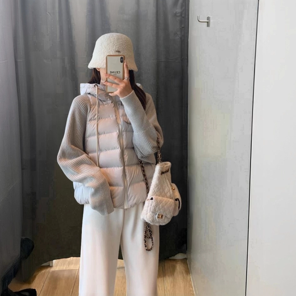 轻薄针织拼接棉服女款2026冬季新款韩版假两件棉衣保暖棉袄外套