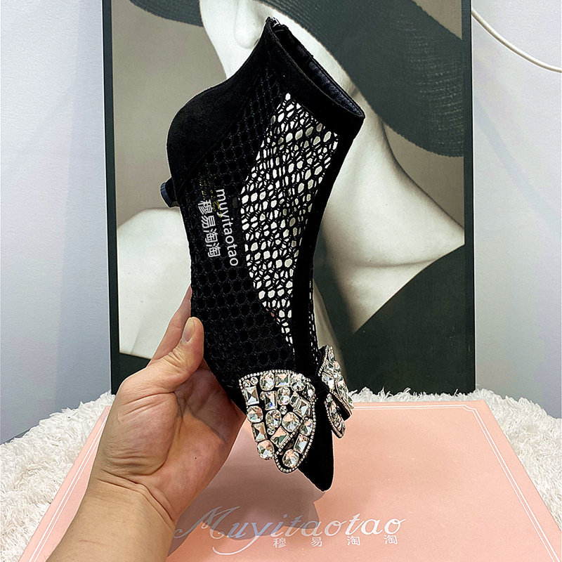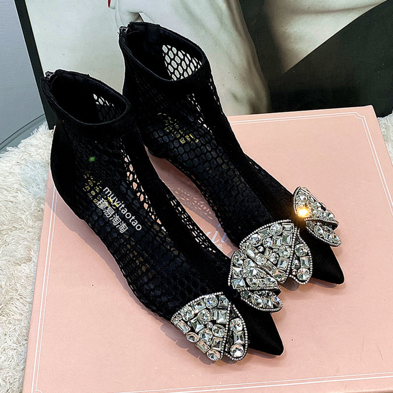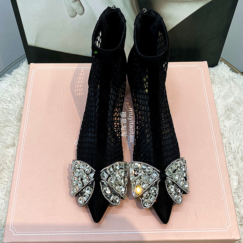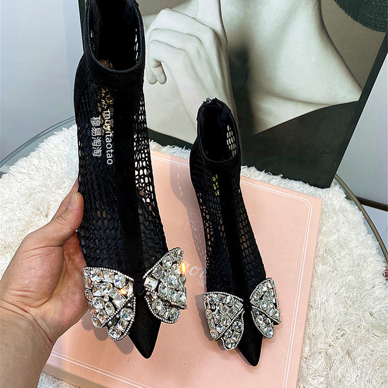 闪闪惹人爱蝴蝶结尖头网面短靴女2026夏天穿的透气不闷脚高跟凉靴