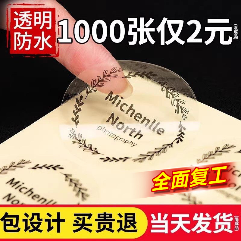 透明logo贴纸不干胶定制二维码烫金厨房pvc手机壳商标奶茶封口贴