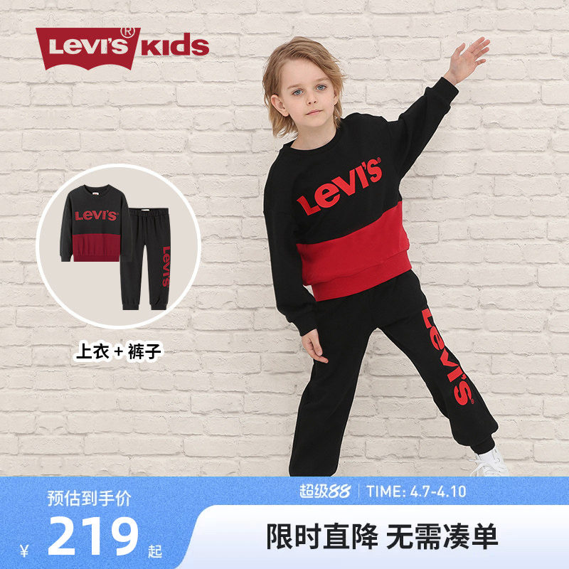 李维斯童装2026春季新款男女童套装纯棉长袖运动长裤圆领套头卫衣
