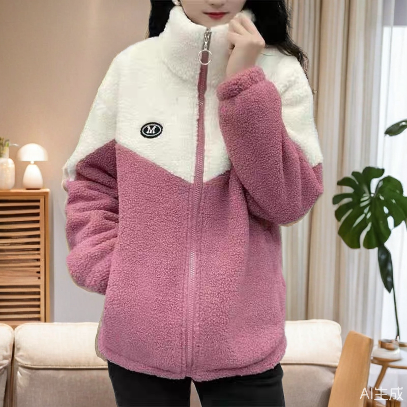 羊羔绒外套春秋冬新款女妈妈加绒棉袄女款中老年加厚棉服保暖