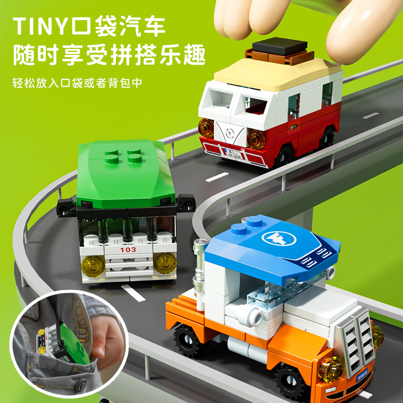方橙积木儿童益智拼装汽车小颗粒玩具男孩跑车模型消防车礼物拼图