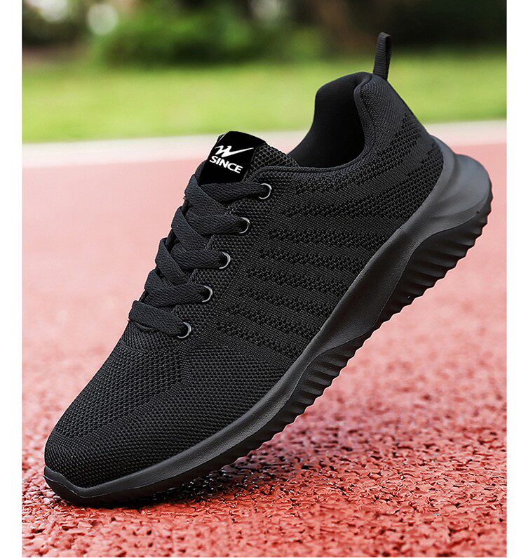 双星男鞋官方正品男士飞织网面透气黑色运动鞋轻便软底大码跑步鞋