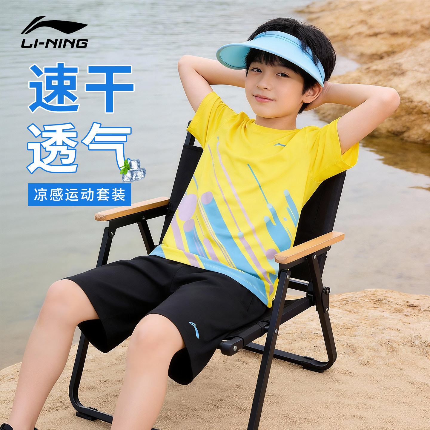 李宁运动速干套装儿童男女童短袖速干透气羽毛球乒乓球比赛训练服