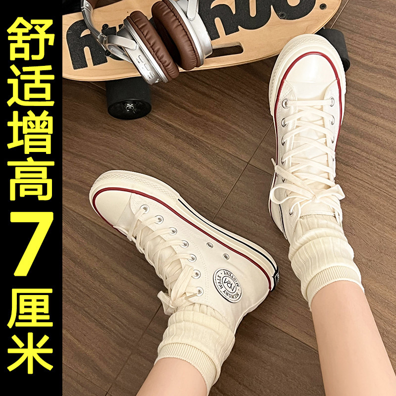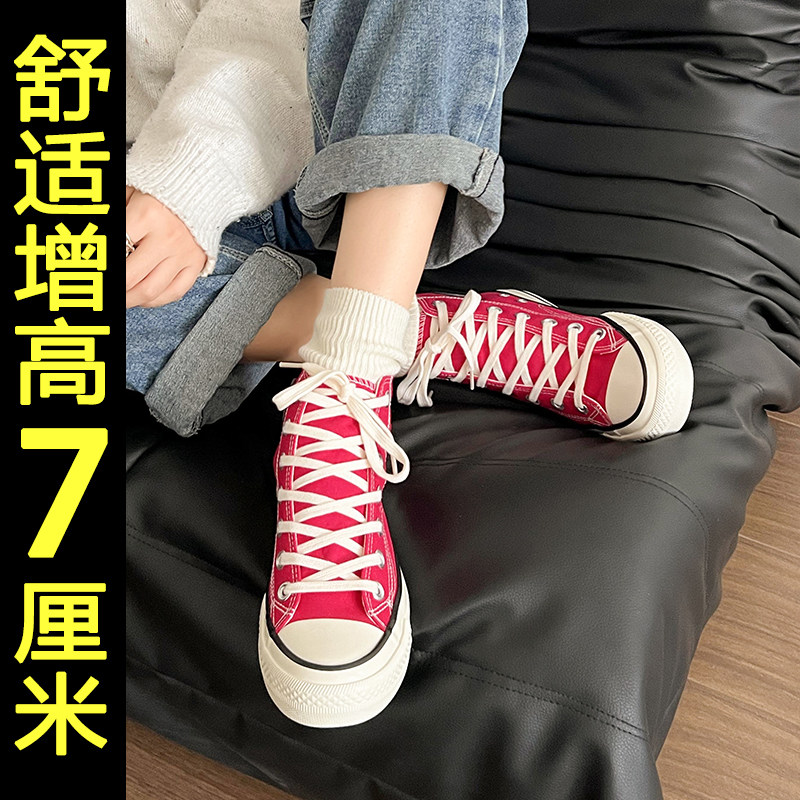 复古高帮帆布鞋女2026新款春秋超火百搭厚底板鞋内增高休闲小白鞋