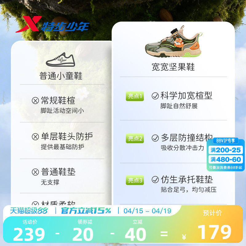 【宽宽坚果鞋】特步童鞋儿童密网透气男孩运动鞋男童宝宝跑步鞋