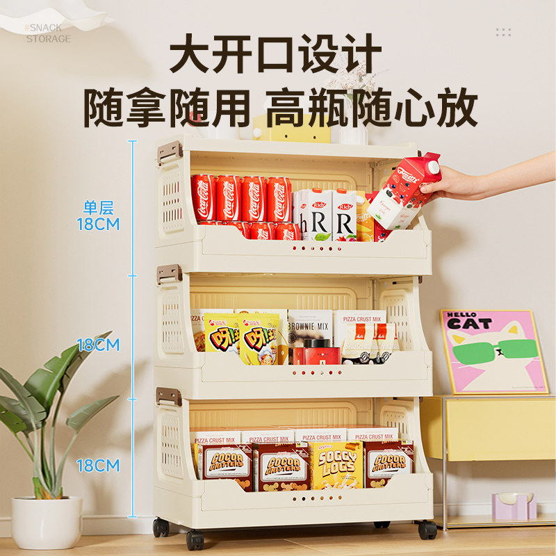 零食置物架多层收纳厨房小推车带轮移动玩具杂物整理储物柜可折叠