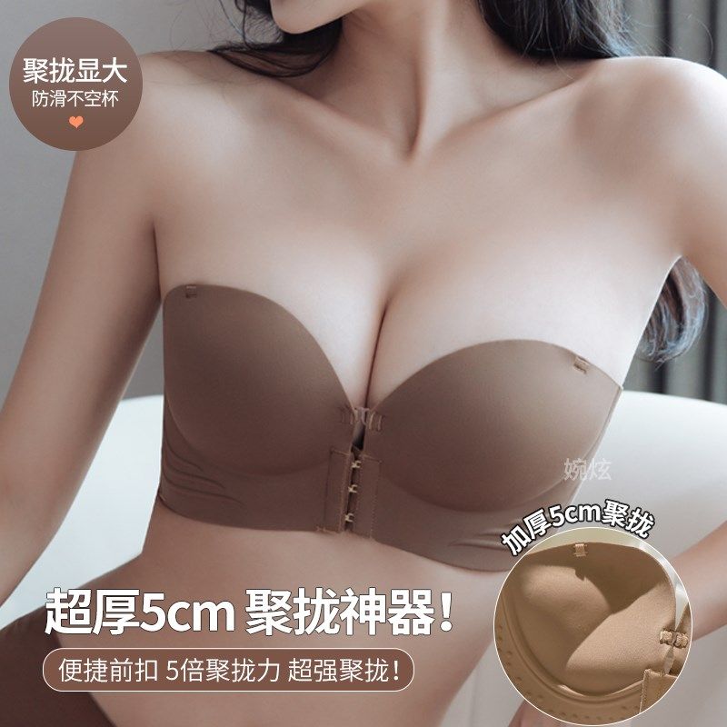 无肩带内衣女防滑小胸聚拢显大加厚5cm防下垂裹抹胸无痕前扣文胸