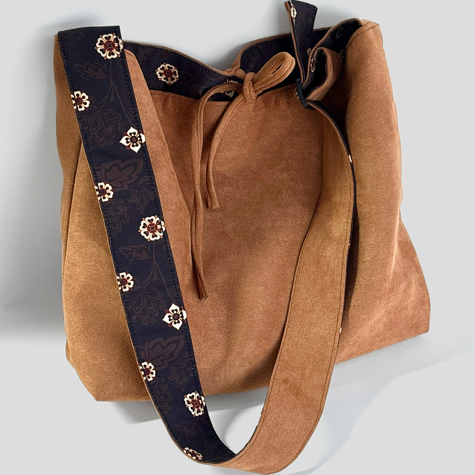 斜挎双面国风百搭柔软麂皮绒单肩宝相花复古斜挎包原创肩带可调节