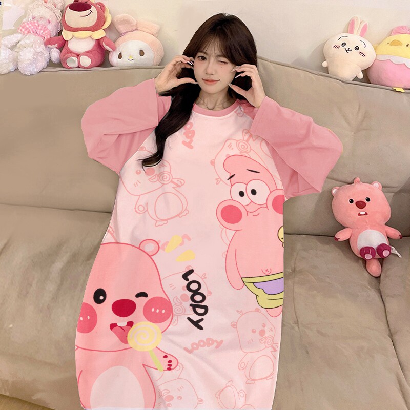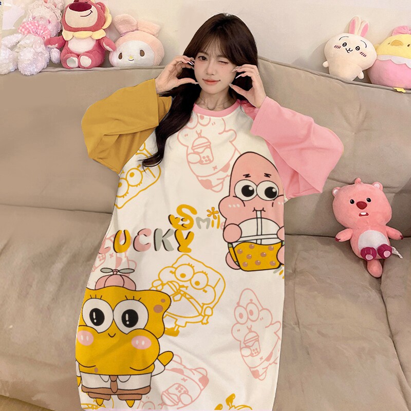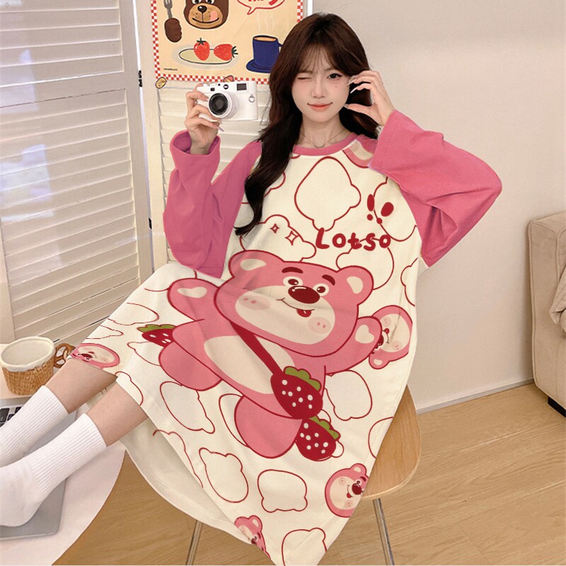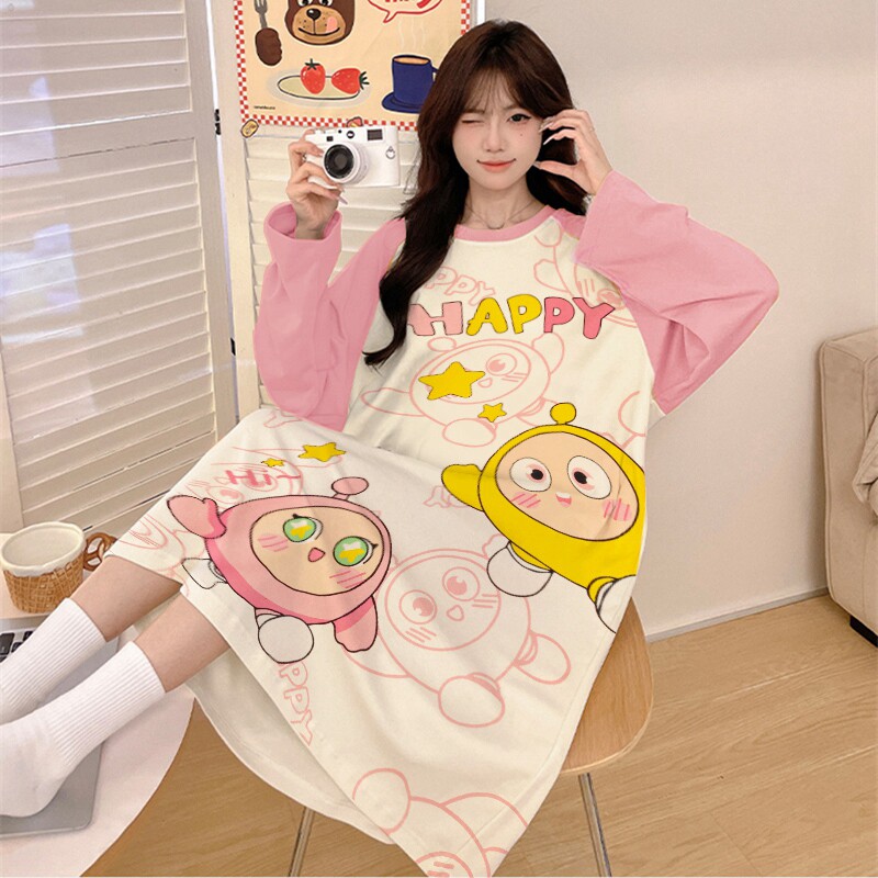 睡裙女纯棉可爱卡通连衣裙少女初中生春装女款2025年新款长袖睡衣