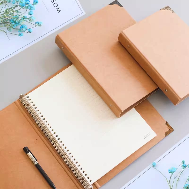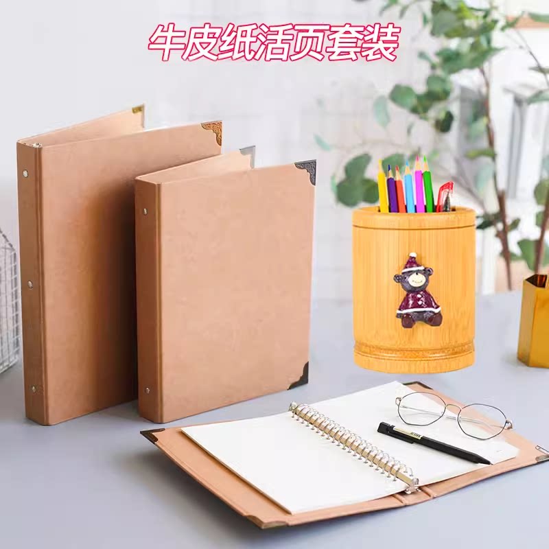 A4B5A5A6加厚牛皮纸笔记本封面 DIY可拆卸装订活页本外壳金属包角