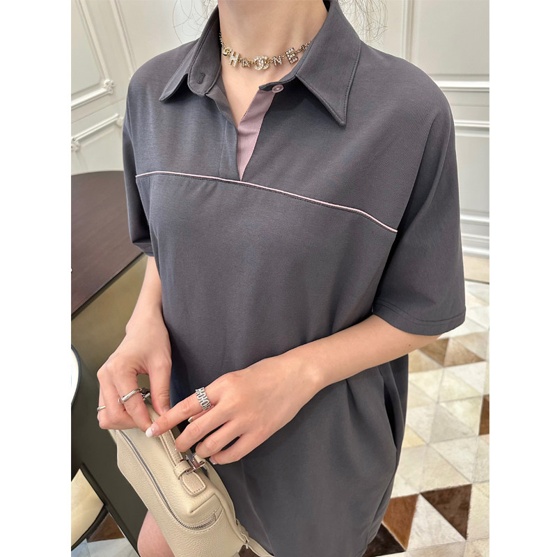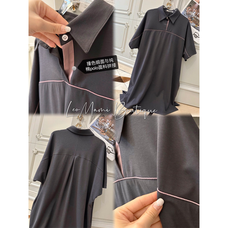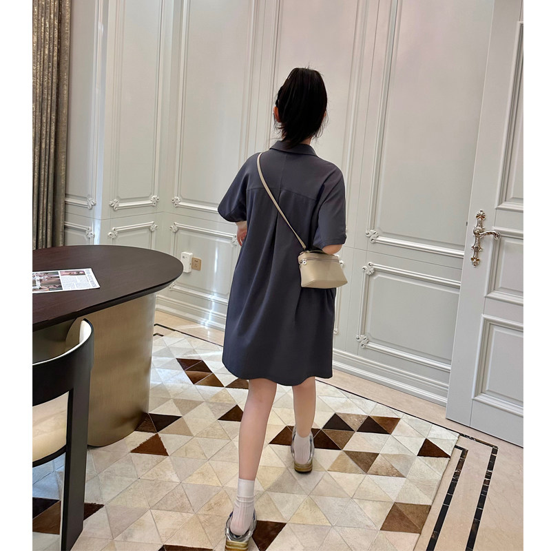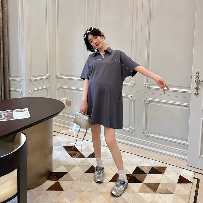 LeoMami孕妇装夏款直筒显瘦POLO领连衣裙薄款通勤宽松遮肚子裙子
