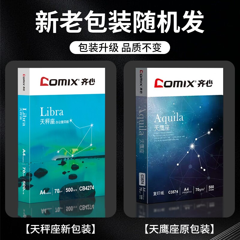 【上市公司】齐心集团a4打印纸复印纸70g加厚单包A4纸500张打印纸批发整箱办公学生用纸打印白纸草稿纸便宜