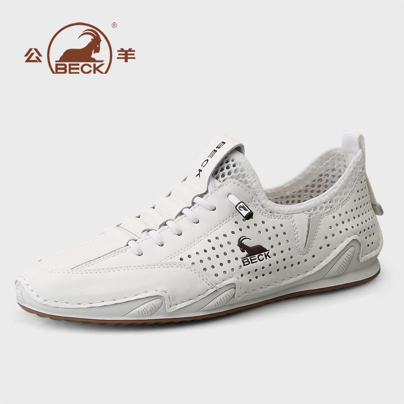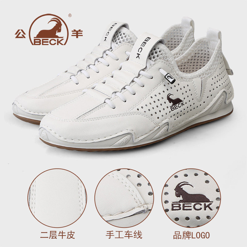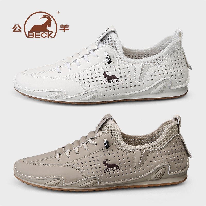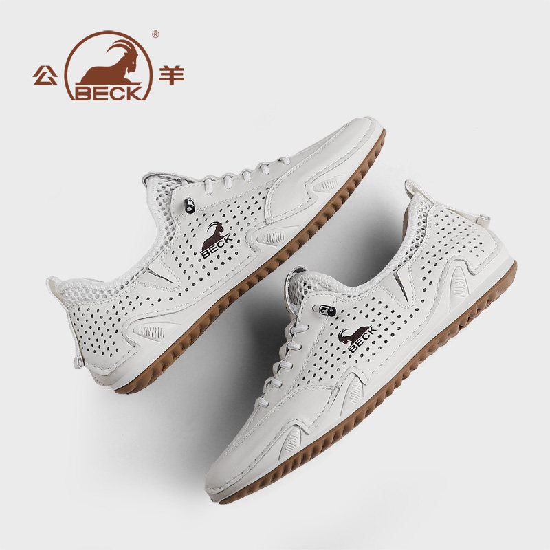 公羊鞋子男鞋2026夏季新款透气镂空真皮男士休闲鞋夏天潮流运动鞋