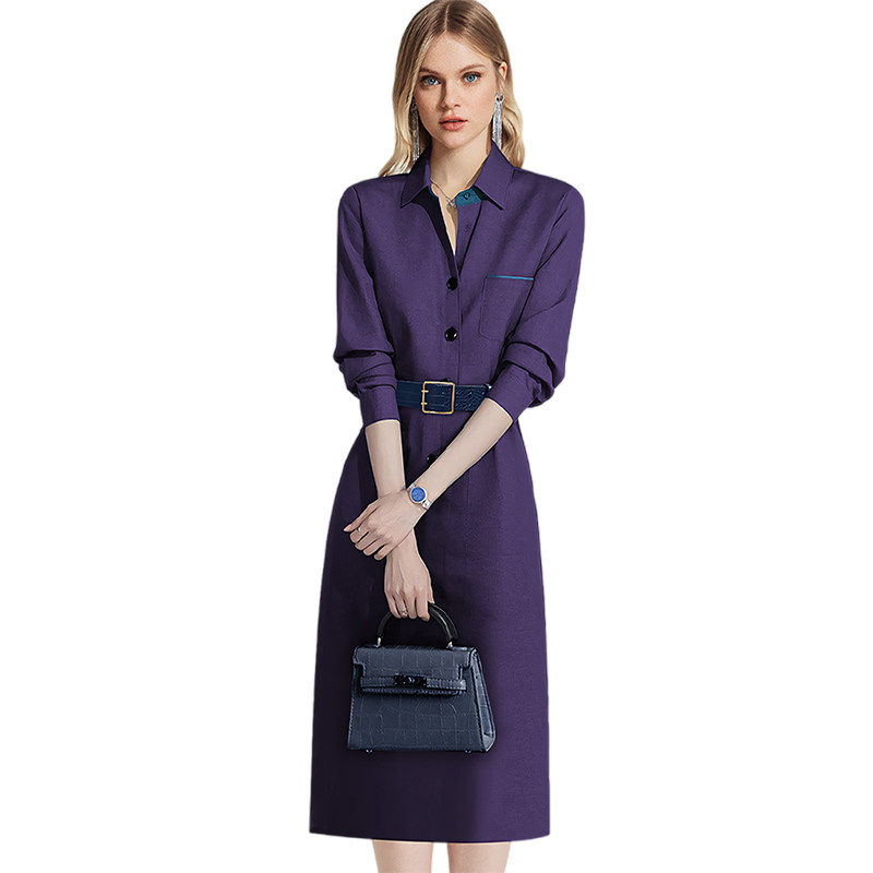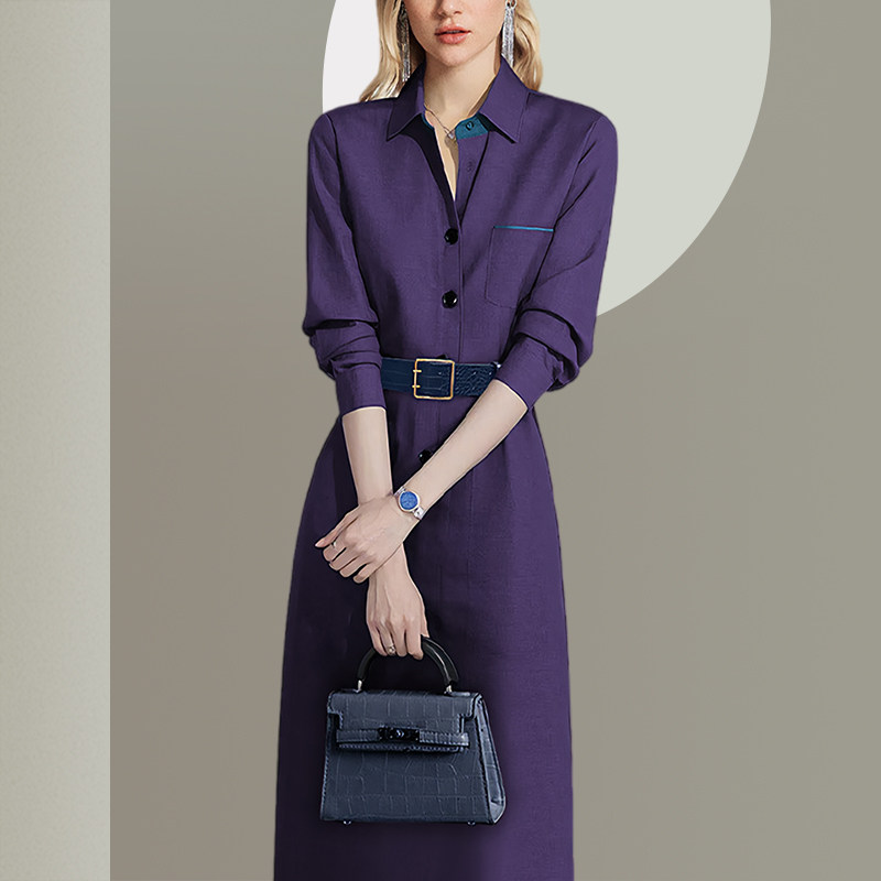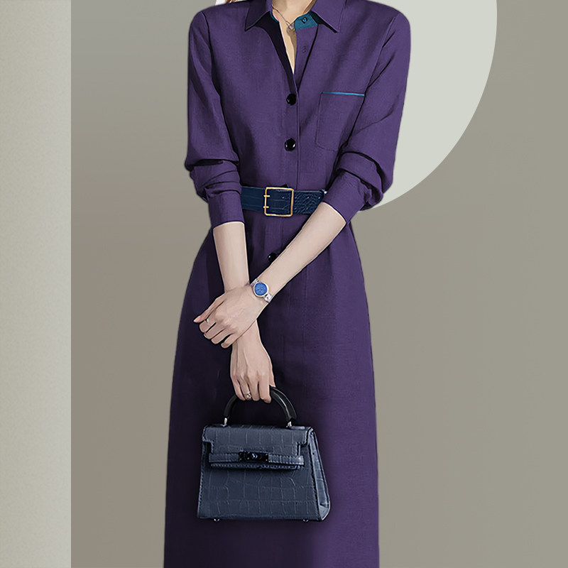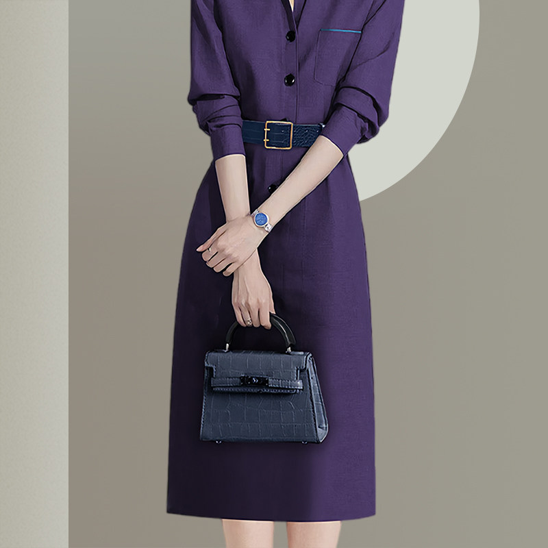 高级感紫色收腰连衣裙女长袖2026年春季新款法式名媛气质显瘦裙子
