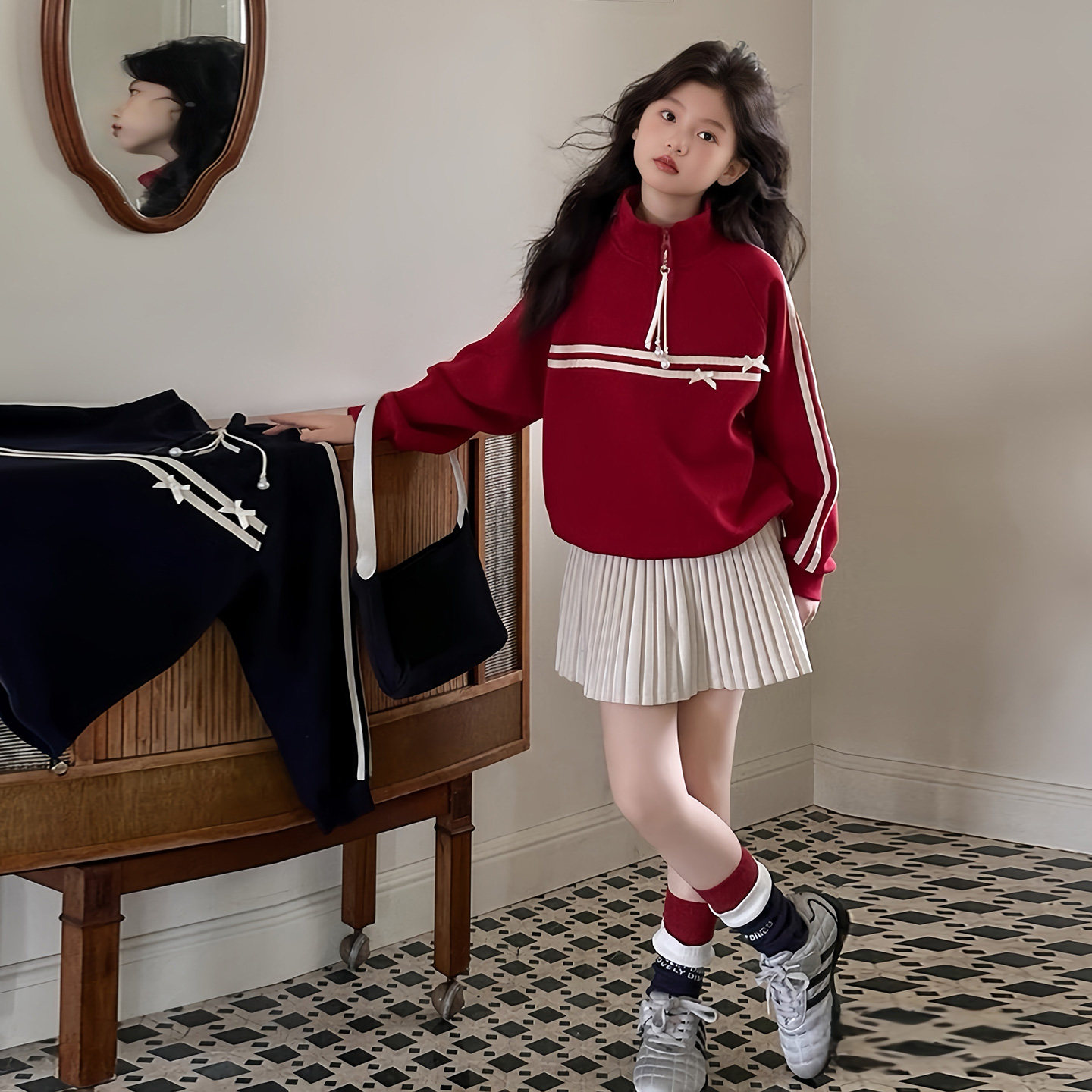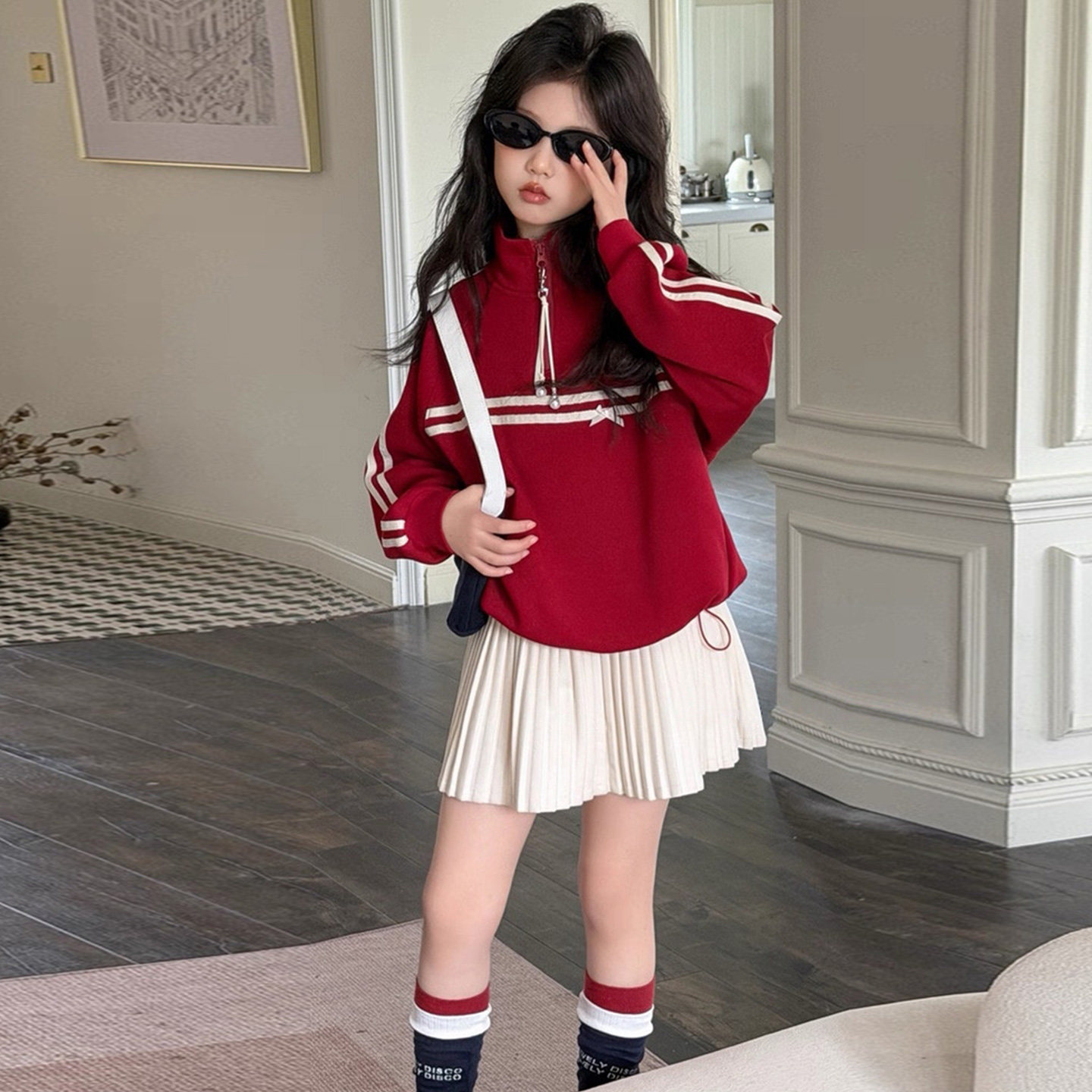 超好看红色卫衣百褶裙套装女童春秋2026新款洋气小女孩运动两件套