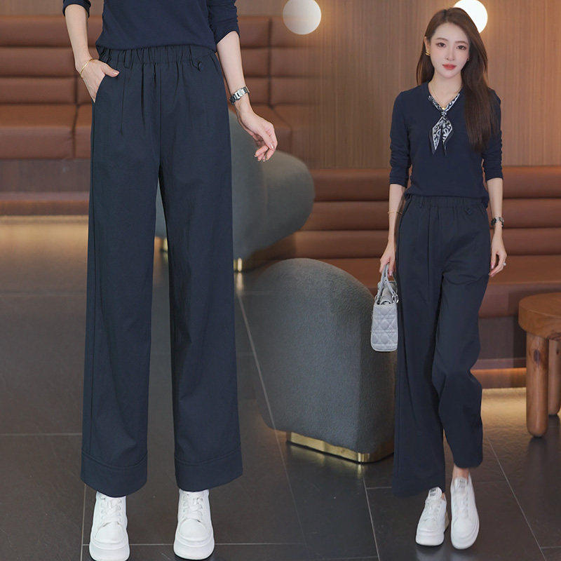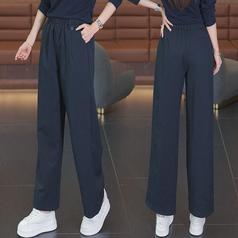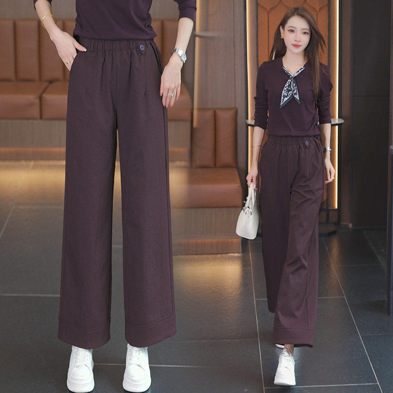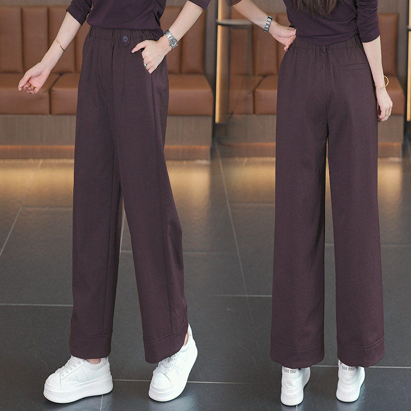 深红色休闲窄版直筒裤子女款2026春季新款女士高腰显瘦宽松阔腿裤