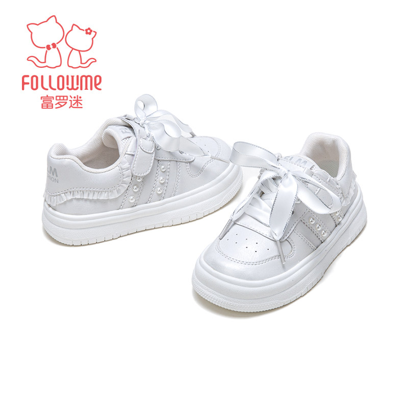 富罗迷儿童板鞋女童鞋子2026春季新款好看轻便软底女款白色运动鞋
