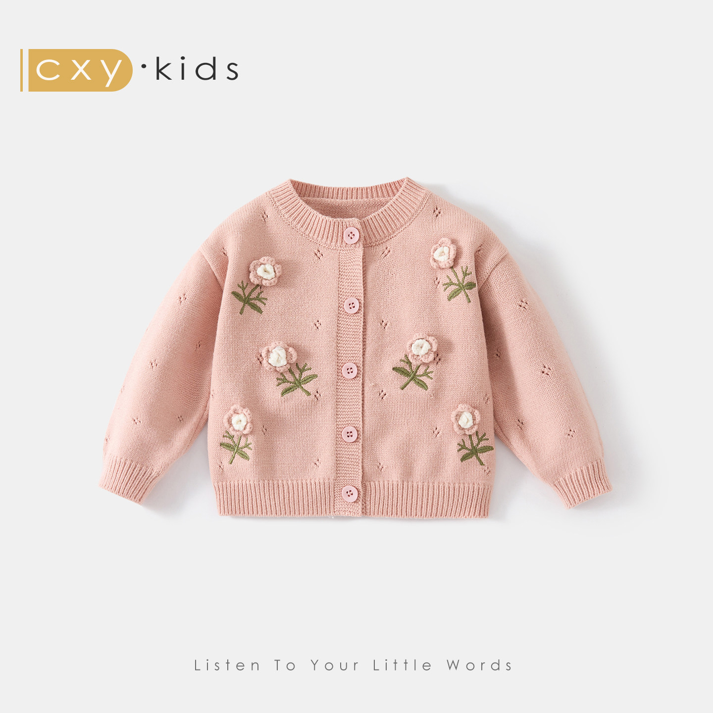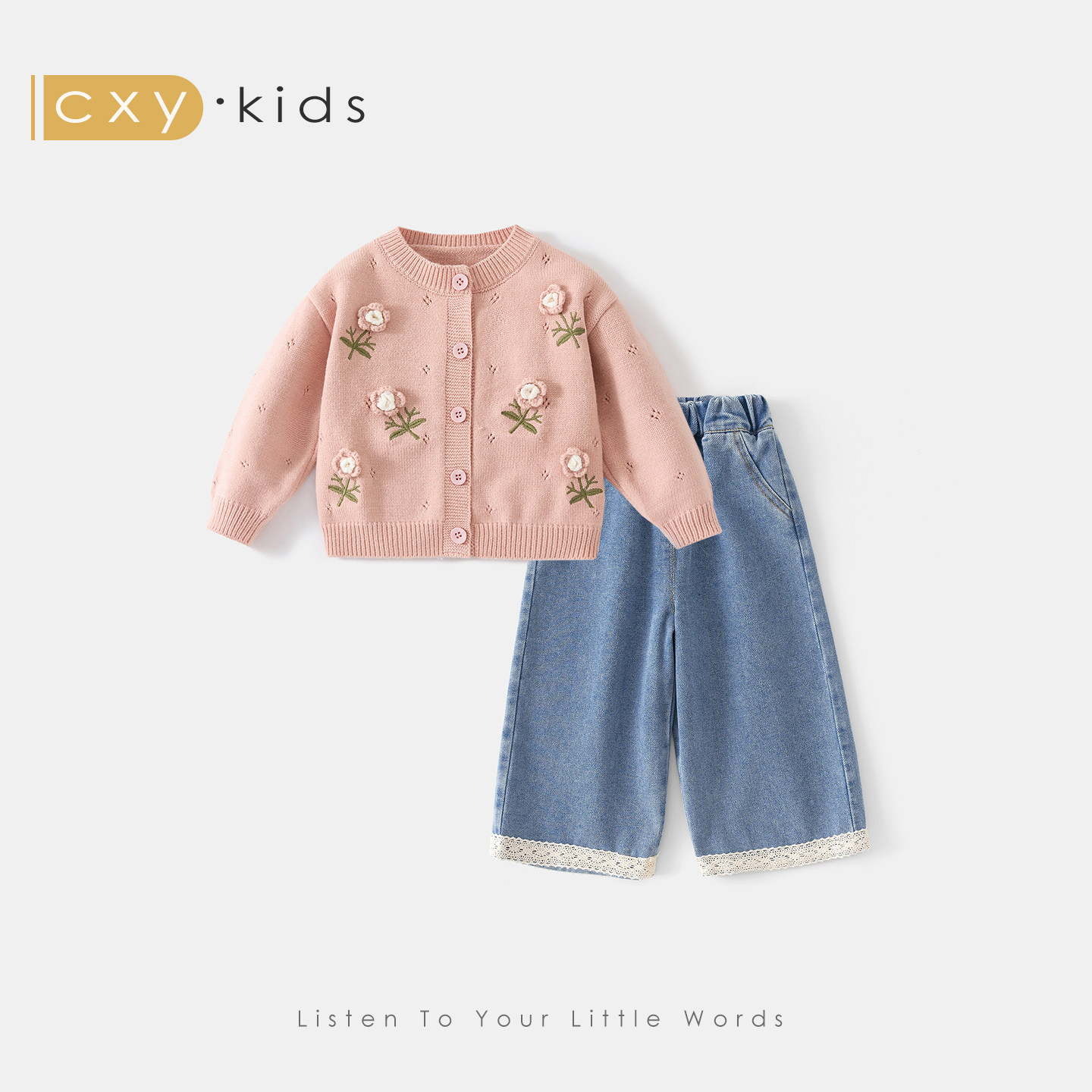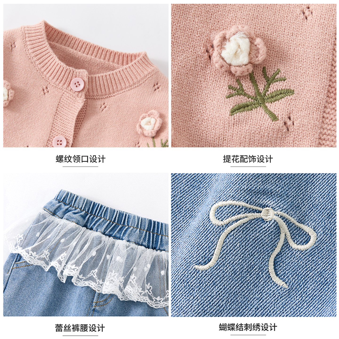 女童春装套装2026新款女宝宝韩系针织外套洋气牛仔裤春秋儿童衣服