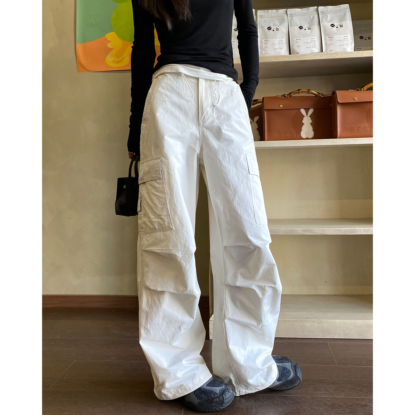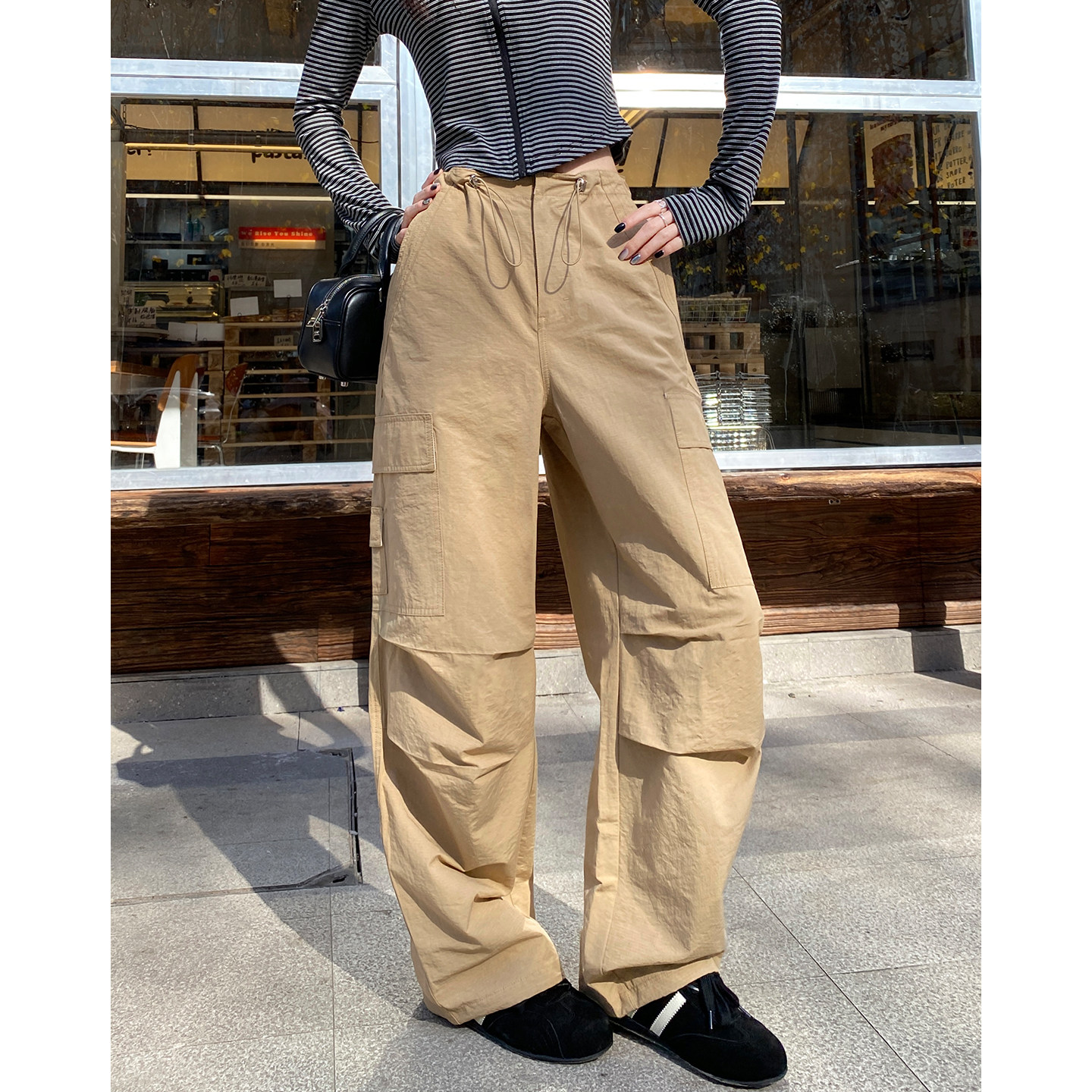 工装裤女款小个子2026春夏新款美式伞兵裤宽松休闲卡其色阔腿裤子