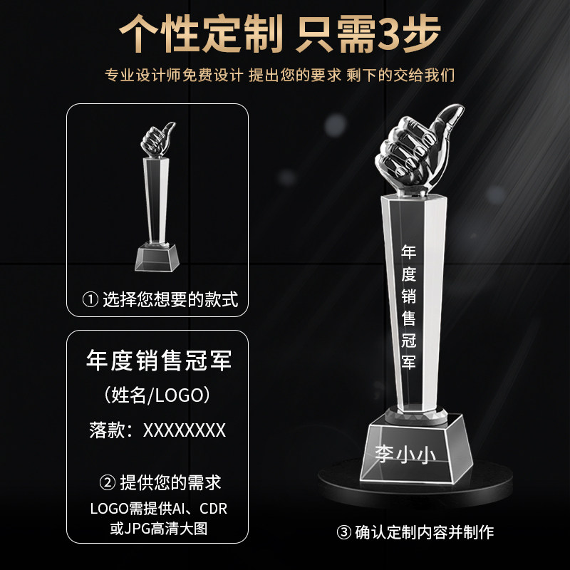 水晶奖杯定制五角星儿童大拇指运动比赛订制刻字优秀员工颁奖年会