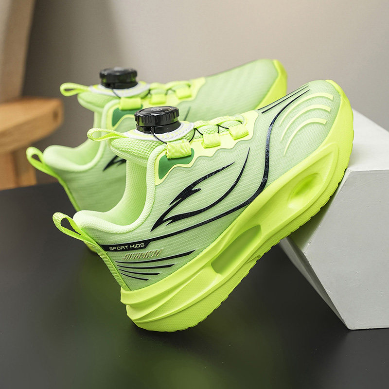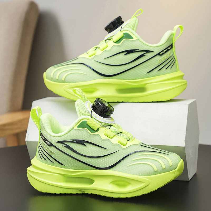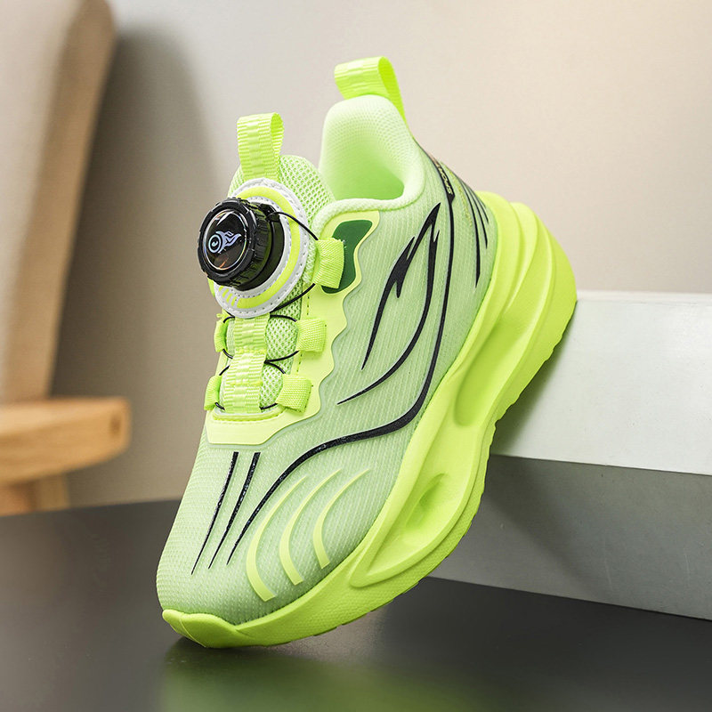 儿童跑步鞋中大童男孩2026秋季新款网面透气男童运动鞋荧光绿软底