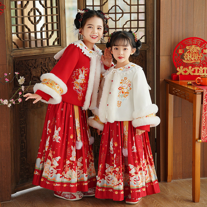 过年新年女童汉服2026新款儿童秋冬马面裙中式国风拜年服套装裙子