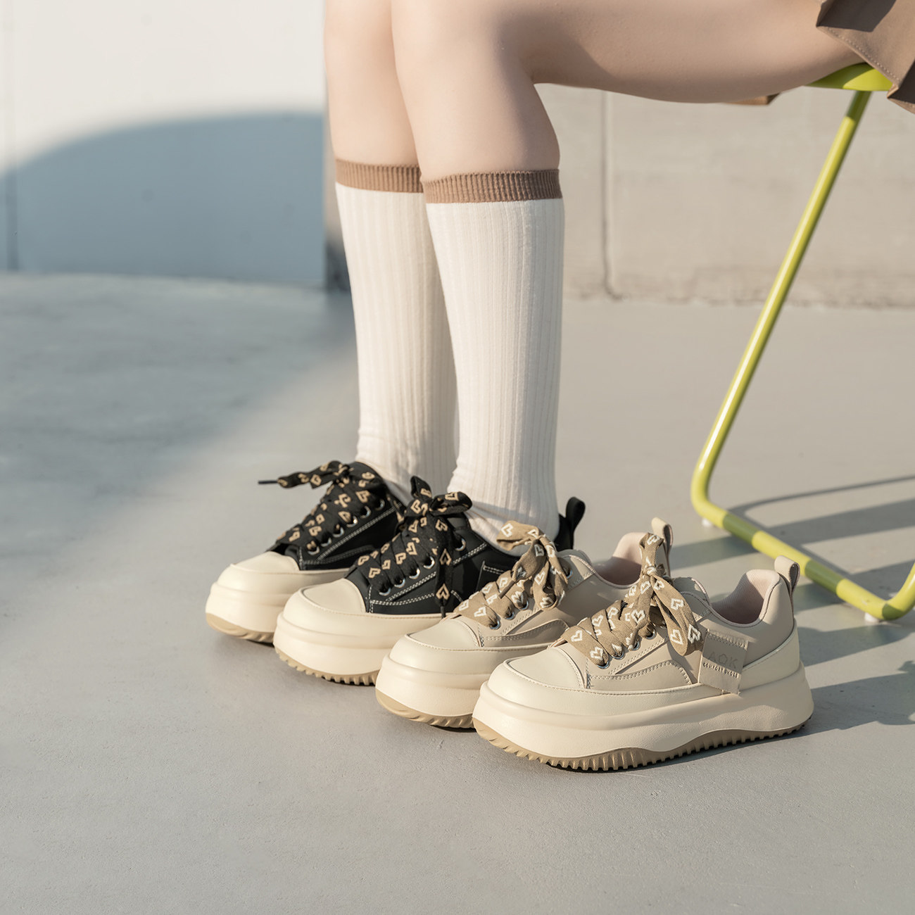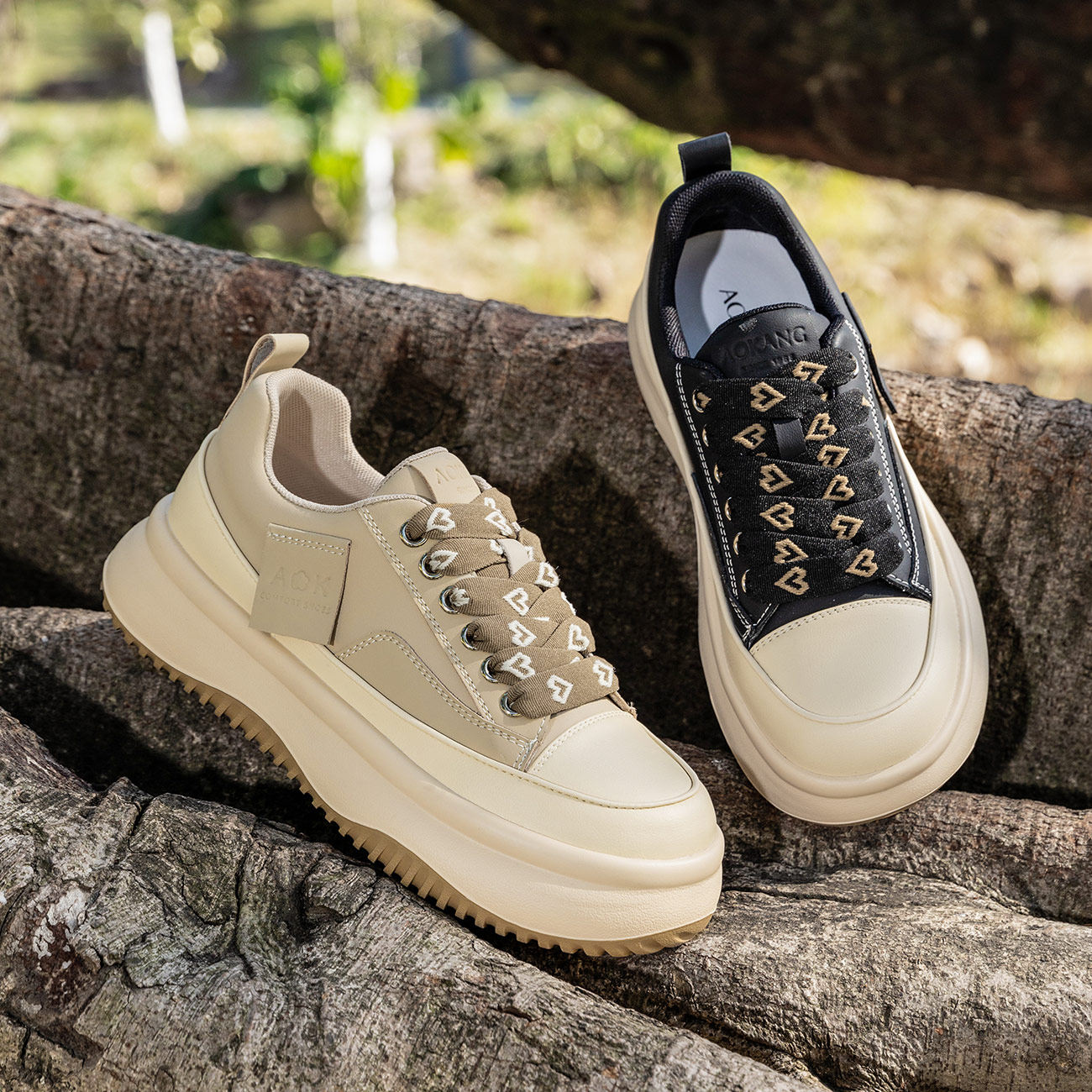 【品牌特惠】奥康女鞋春秋季厚底舒适百搭拼色系带潮流休闲板鞋