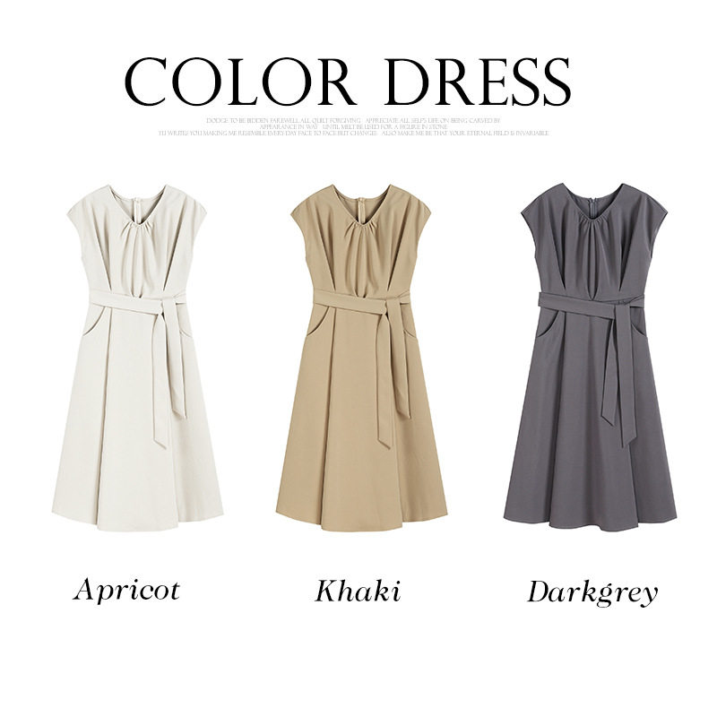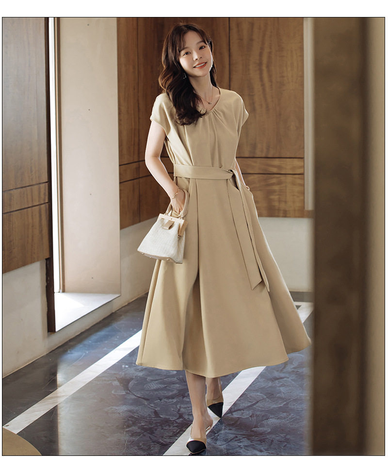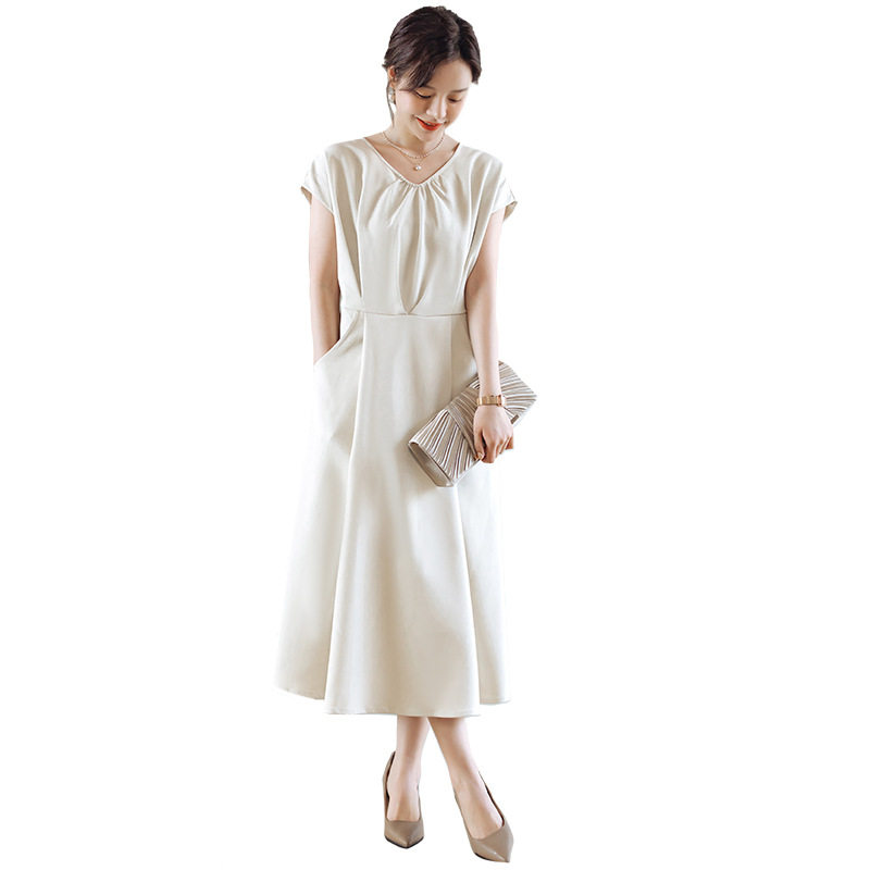 夏季气质a字连衣裙子女士新款精致通勤v领中长裙日常小礼服88501