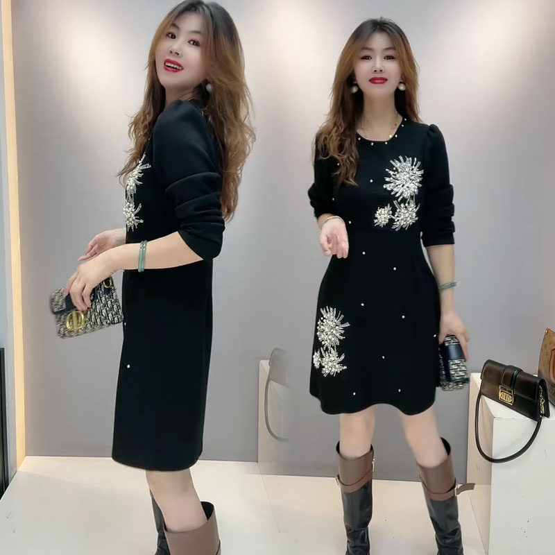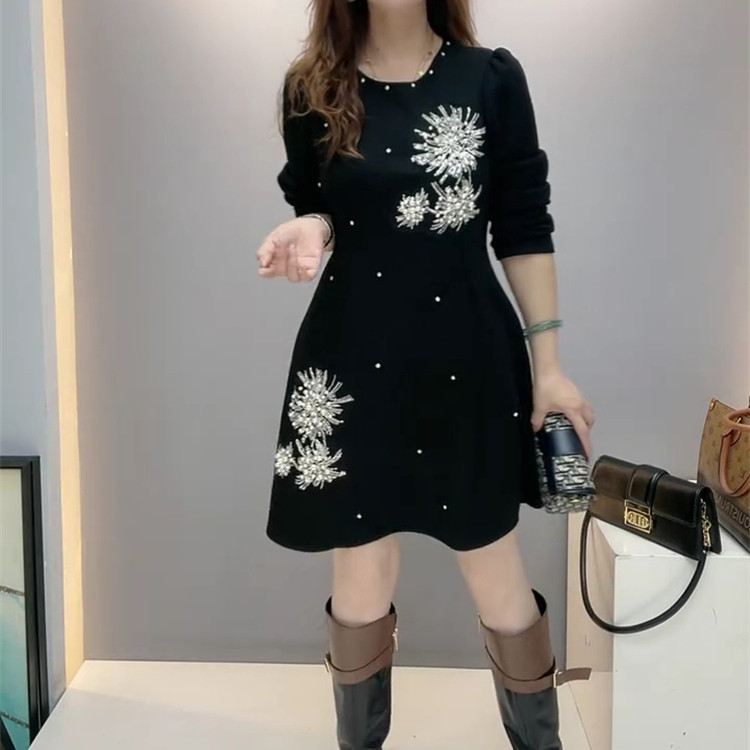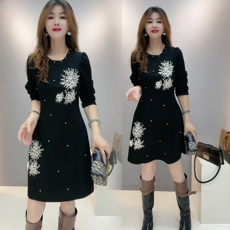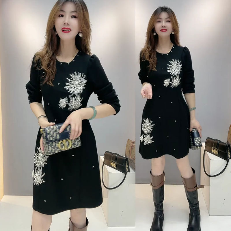 2025秋季新款时尚显瘦气质中长款连衣裙女设计感小众洋气减龄重工