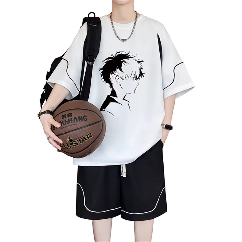 新款初高中学生胖男孩短袖t恤运动套装大童青少年宽松短裤篮球服