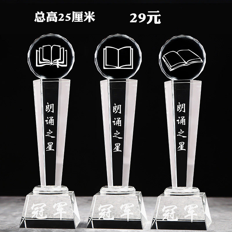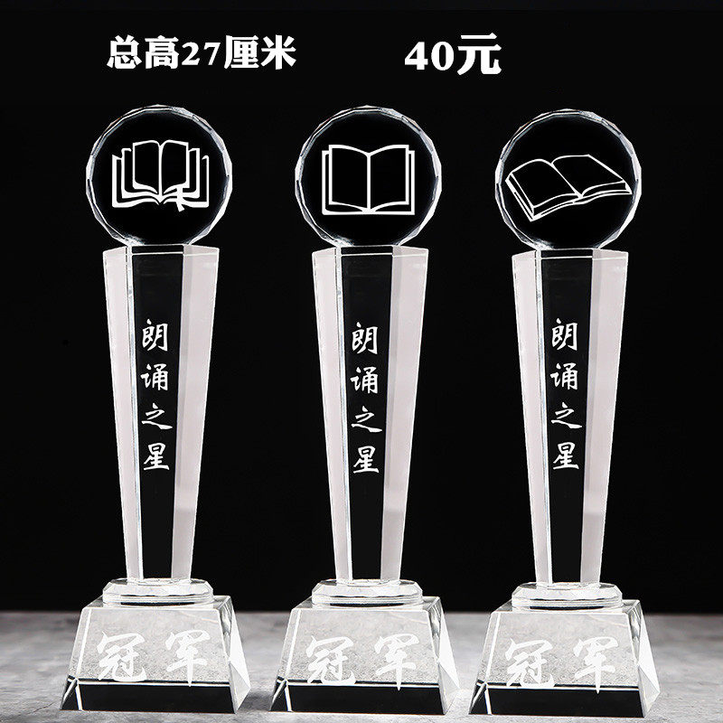 儿童阅读之星水晶奖杯定制学校青少年口才朗诵歌咏比赛奖品制作字