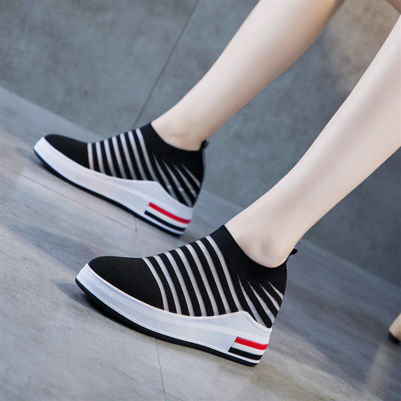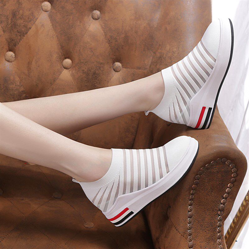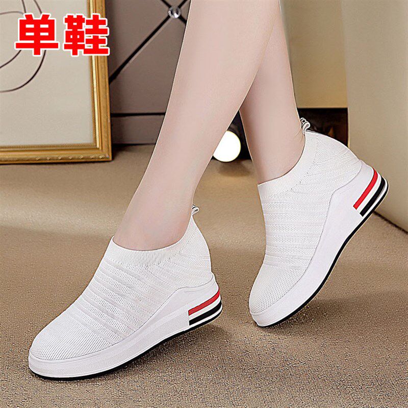 网鞋女透气网面一脚蹬软底镂空内增高小白鞋8cm女鞋坡跟夏天白鞋