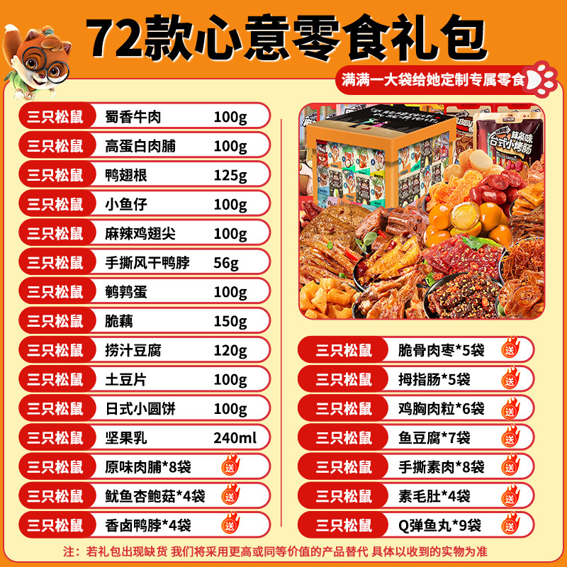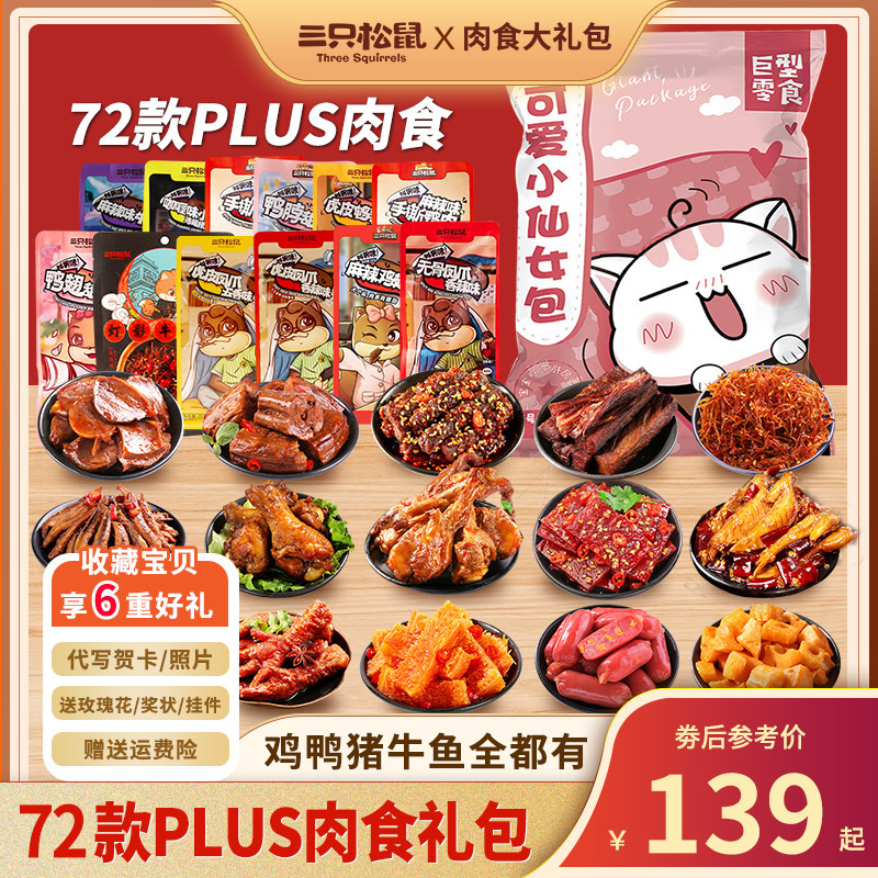 三只松鼠零食大礼包肉类麻辣卤味充饥夜宵整箱送女友小吃休闲食品