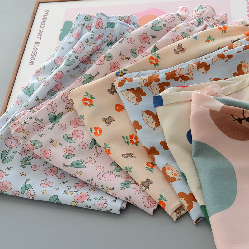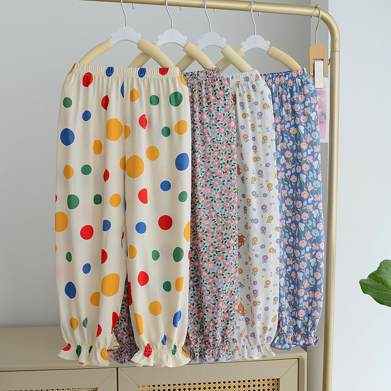 女童绵绸裤子儿童人造棉宽松灯笼裤宝宝洋气薄空调长裤防蚊裤夏款