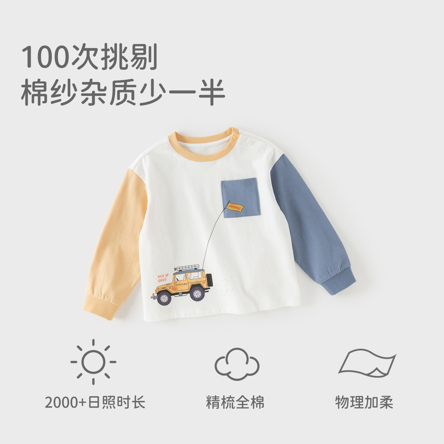 戴维贝拉男童长袖T恤2026春装新款宝宝A类纯棉打底衫儿童洋气上衣