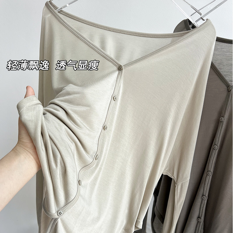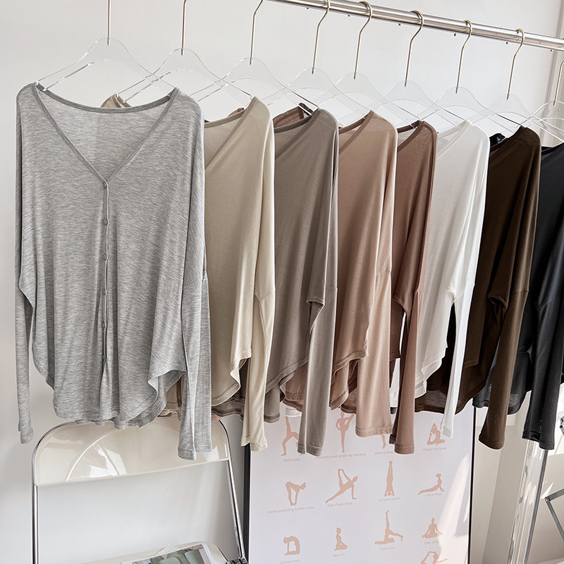 天丝宽松大版防晒开衫蝙蝠长袖上衣女运动休闲跳操瑜伽服健身罩衫